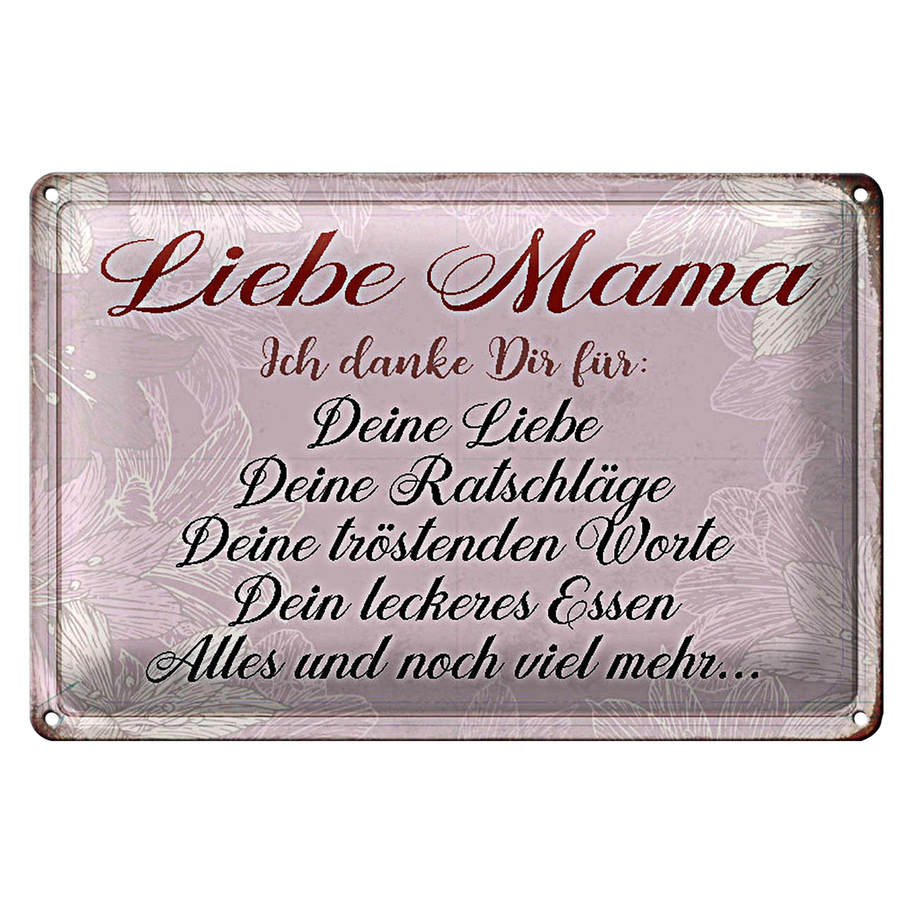 Blechschild Spruch 30x20cm liebe Mama ich danke dir Liebe