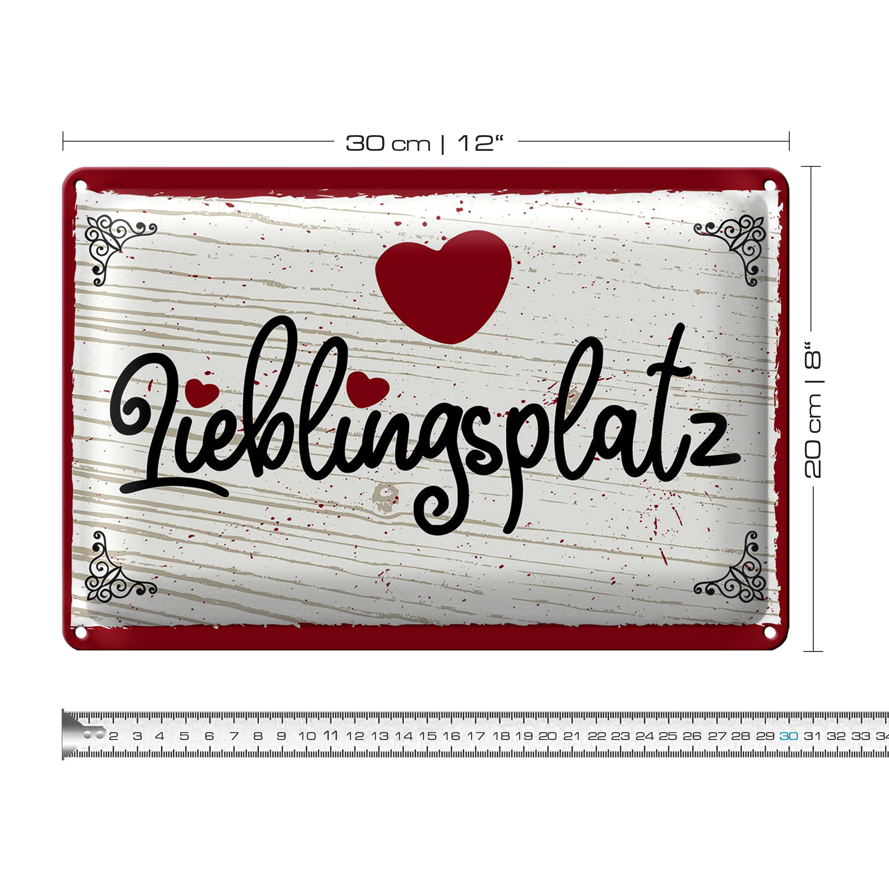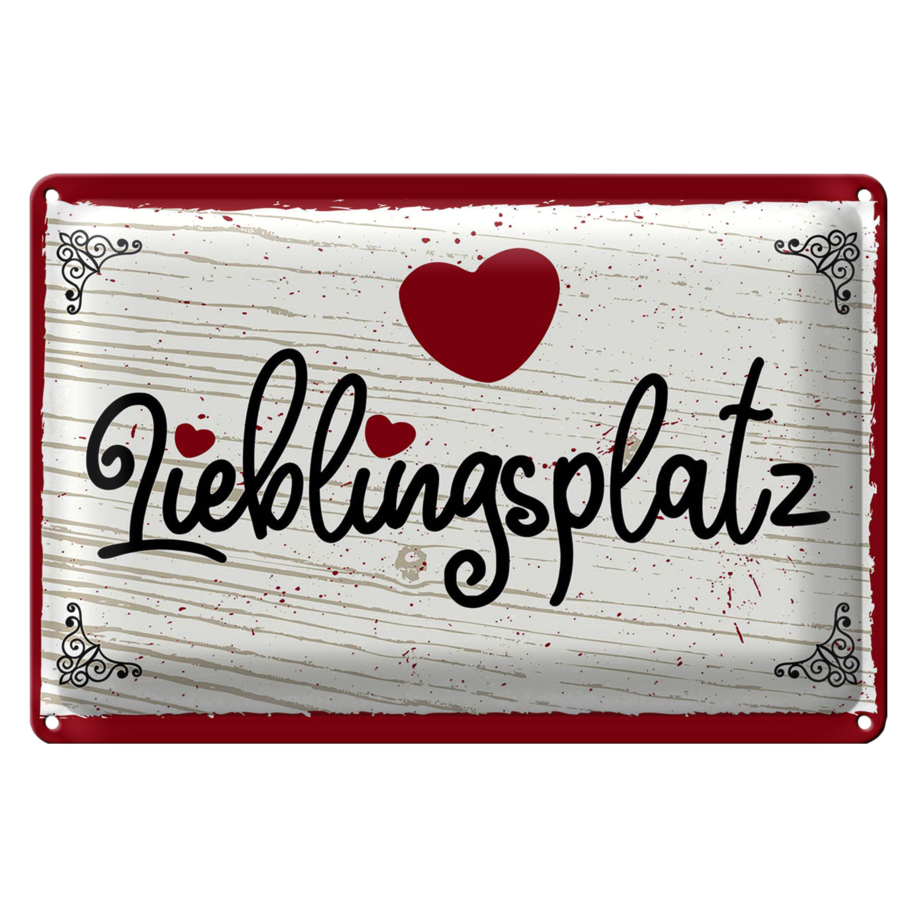 Blechschild Spruch 30x20cm Lieblingsplatz Herz rot