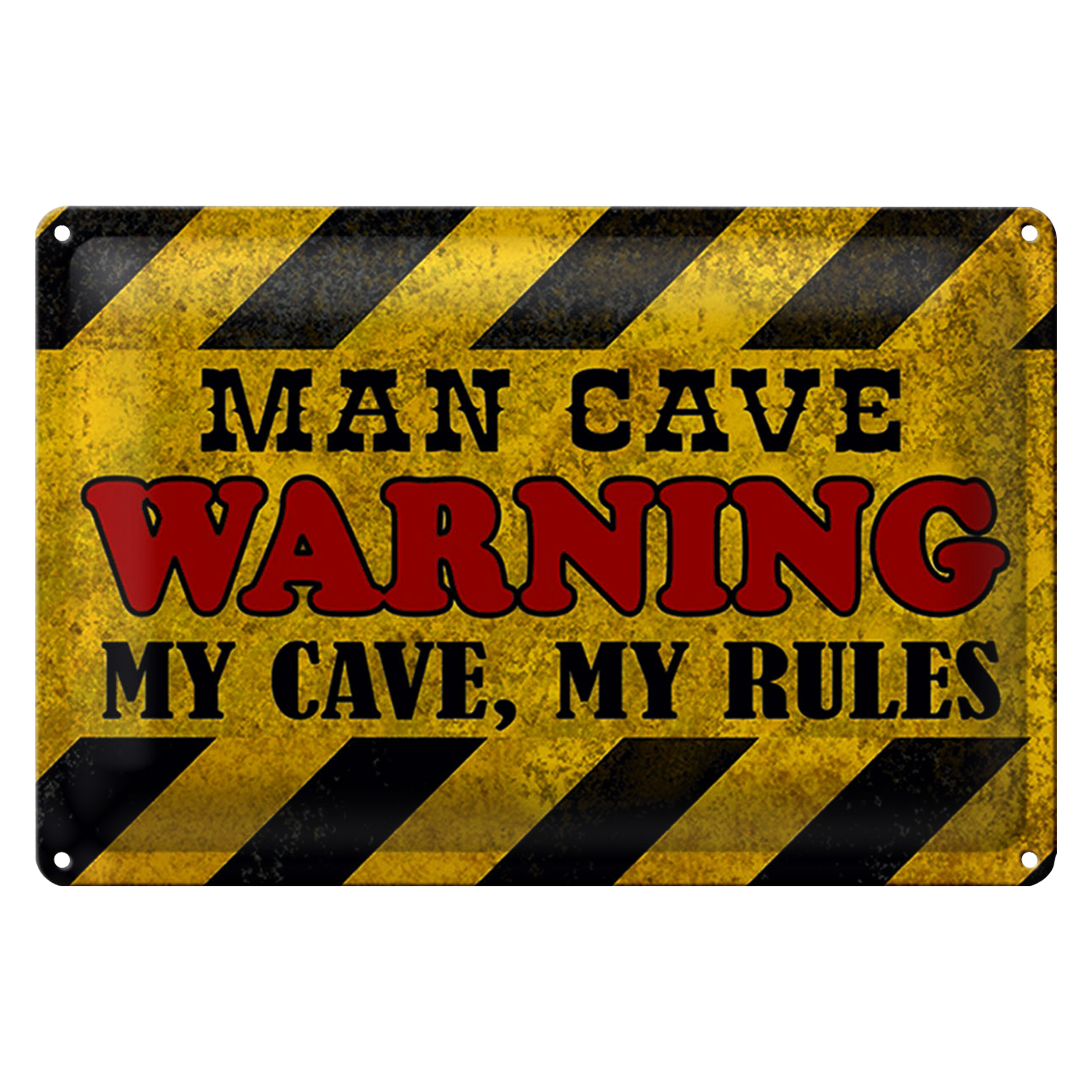 Blechschild Spruch 30x20cm man cave warning my cave rules