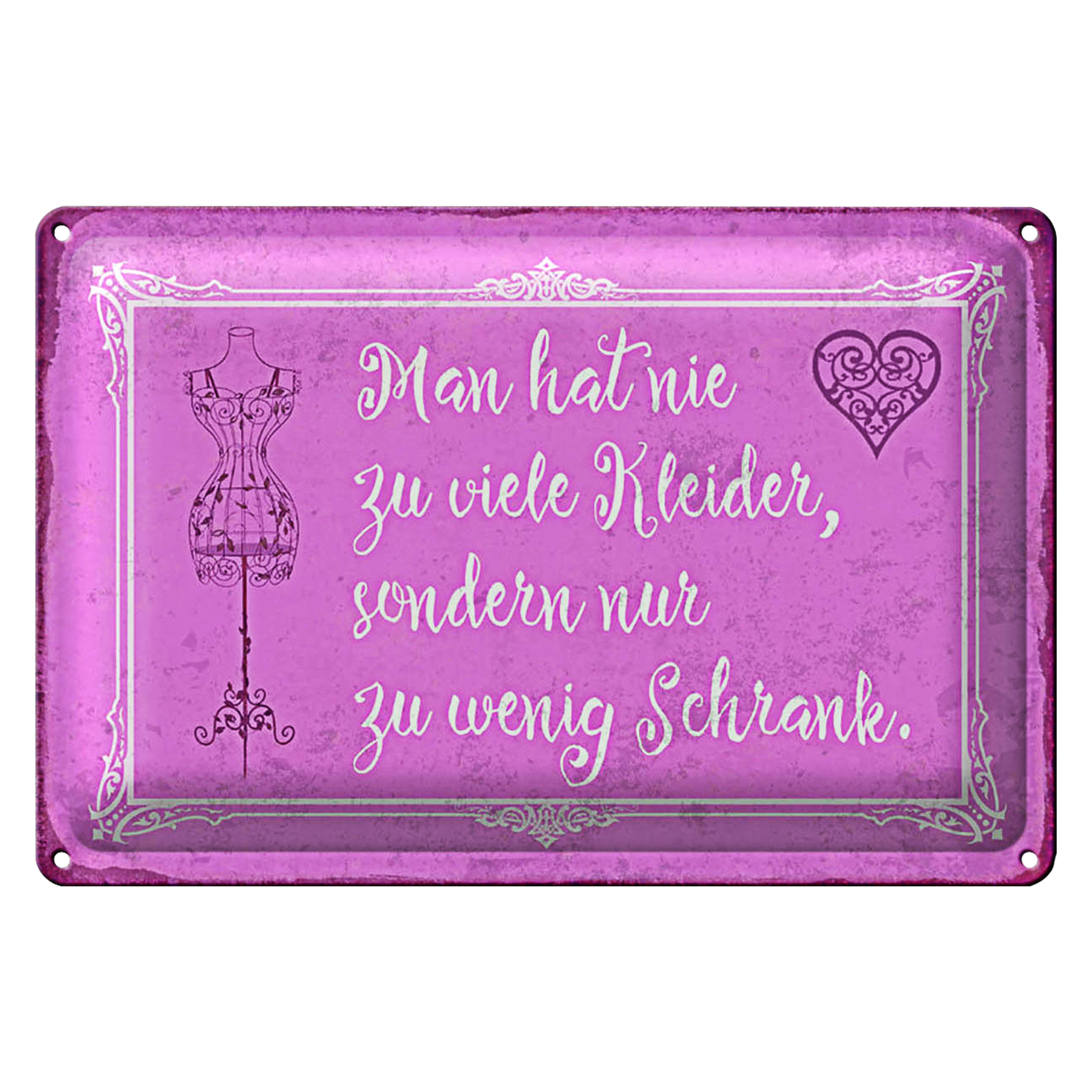 Blechschild Spruch 30x20cm man hat nie zu viele Kleider