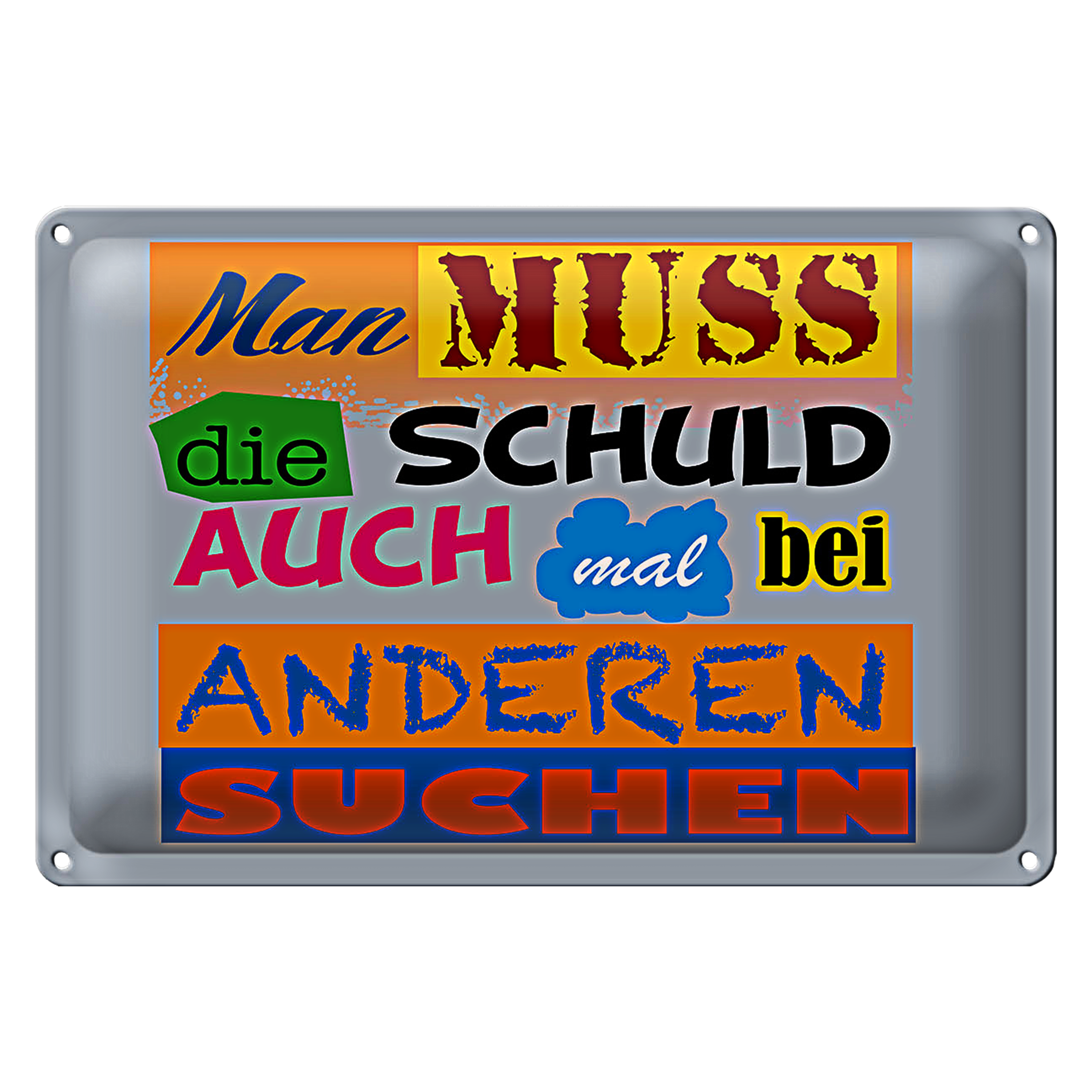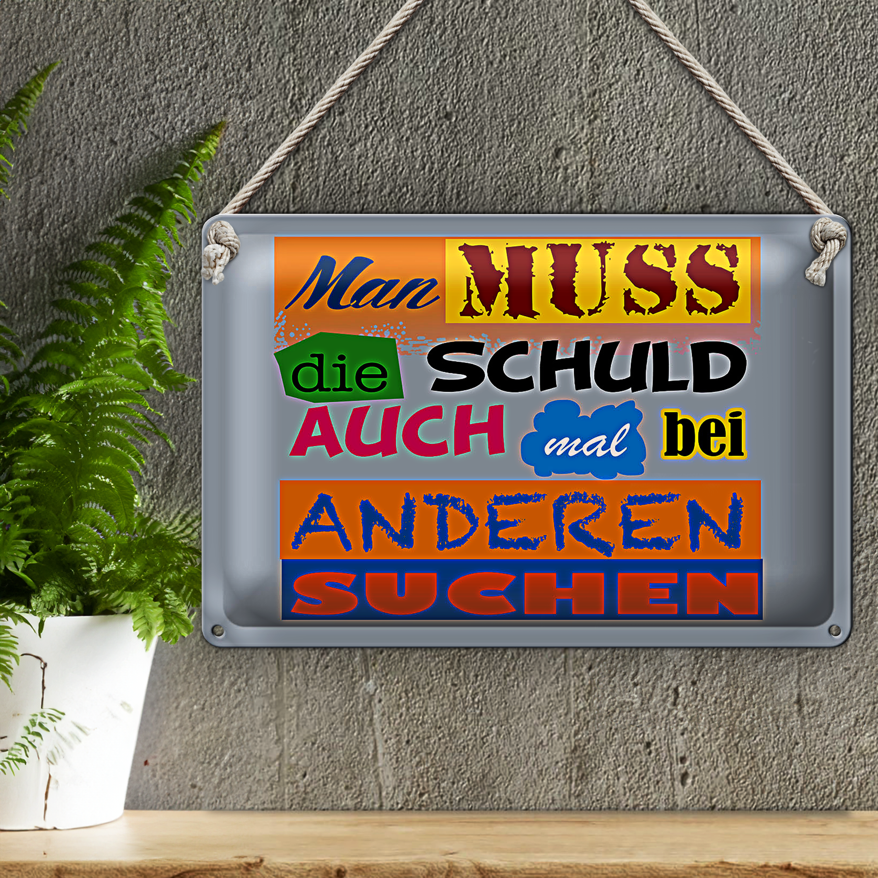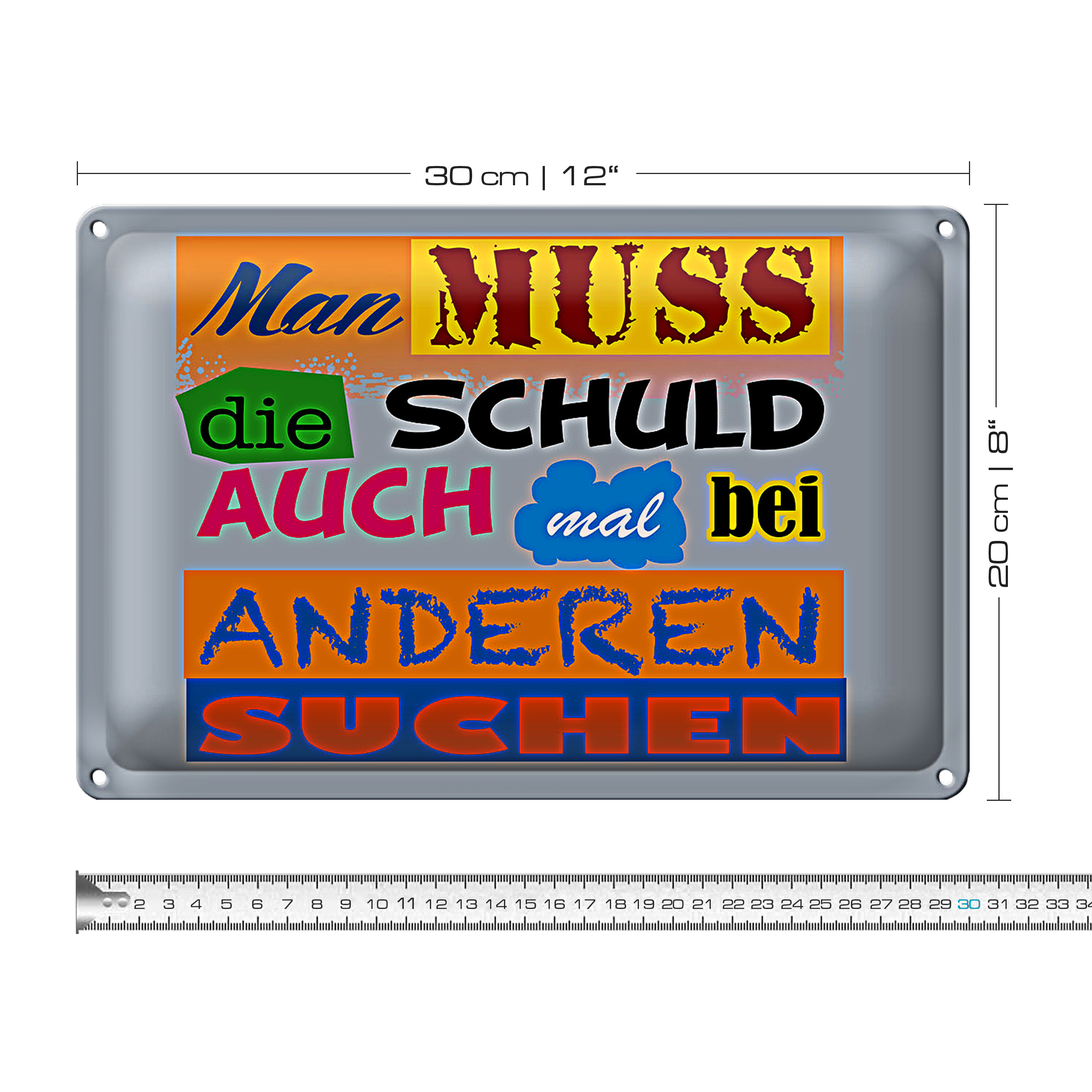 Blechschild Spruch 30x20cm Man muss die Schuld auch mal bei