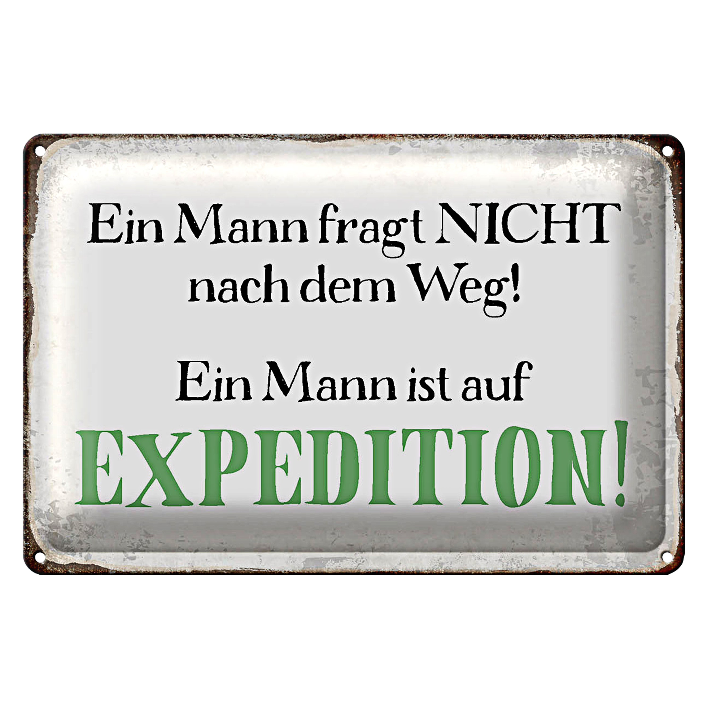 Blechschild Spruch 30x20cm Mann fragt nicht nach dem Weg