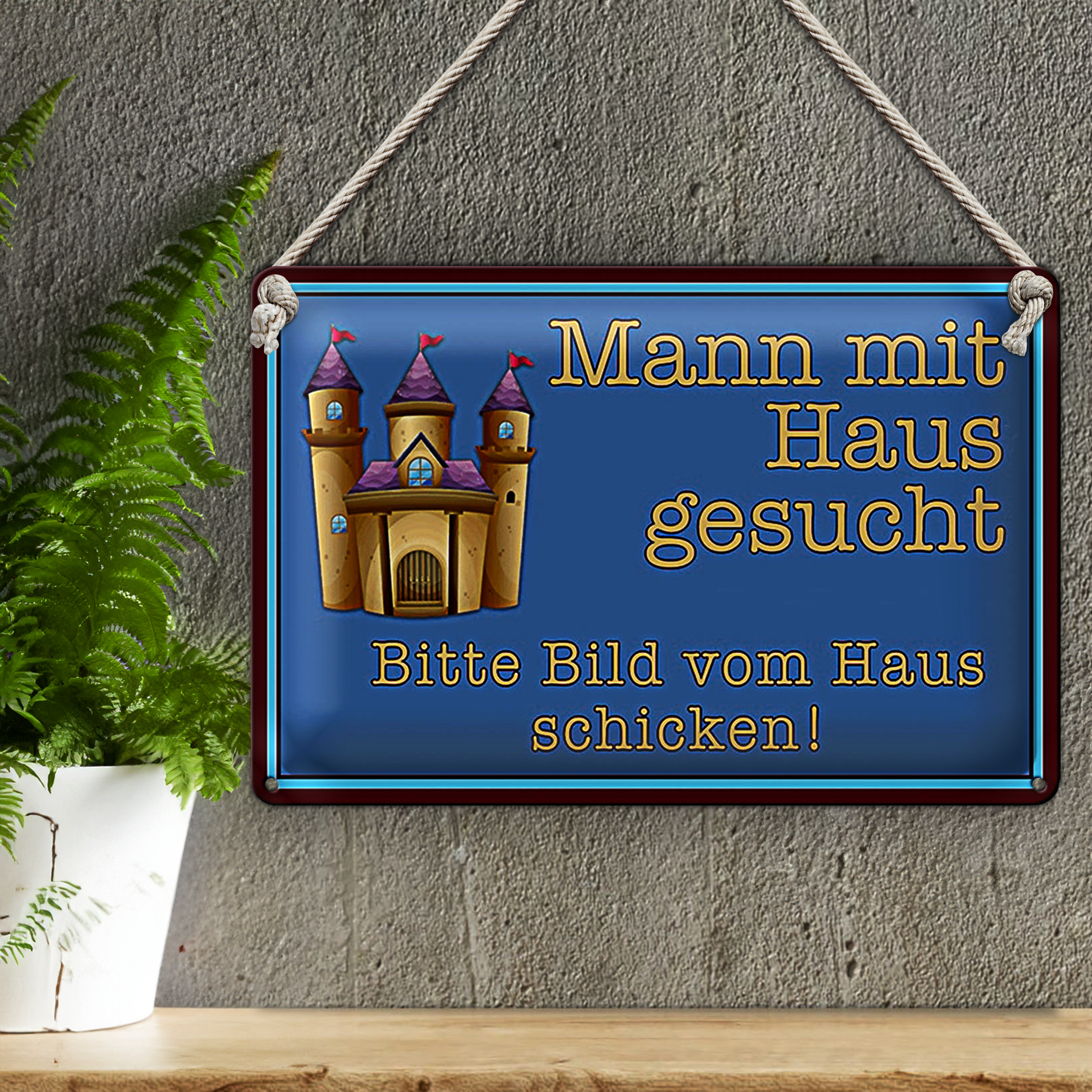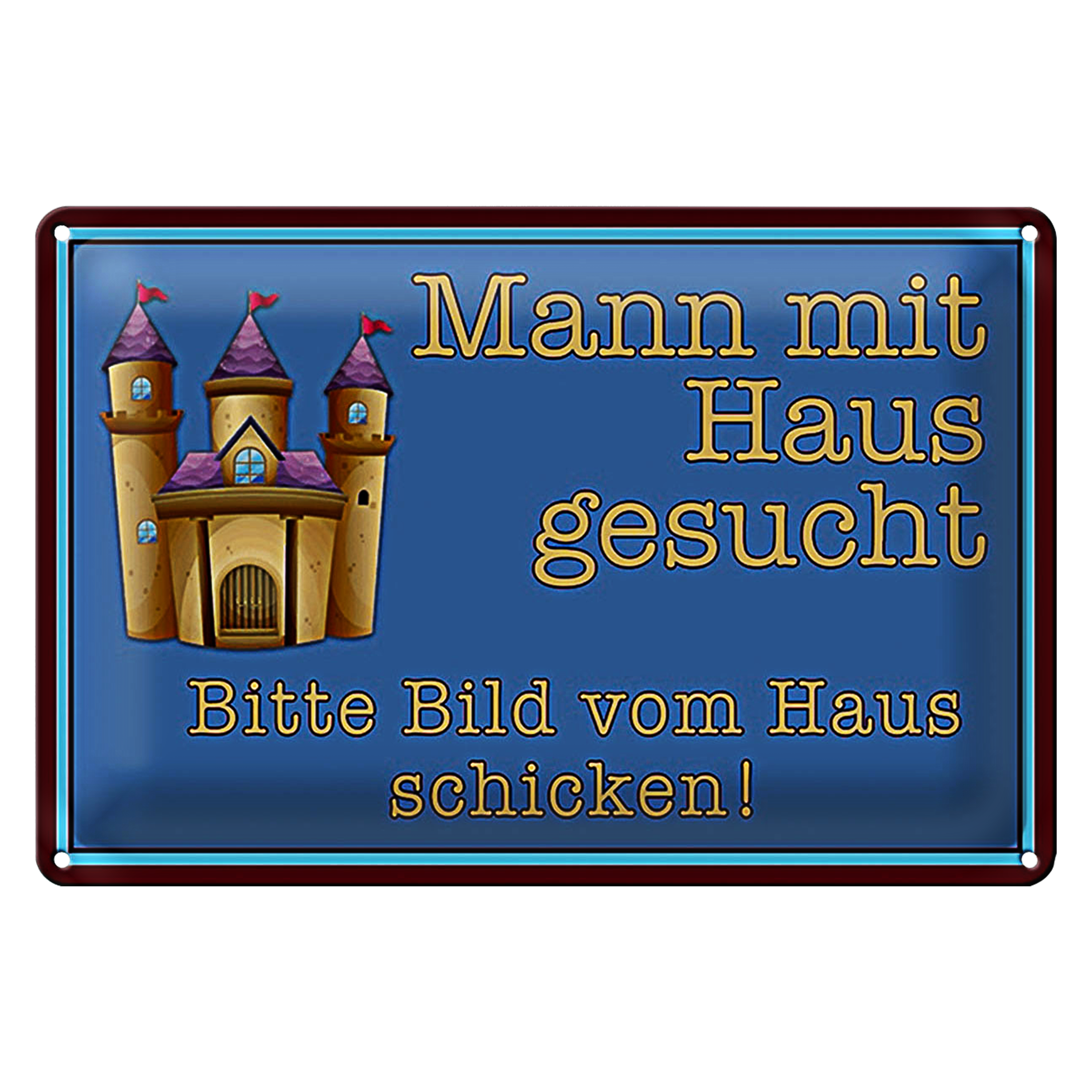 Blechschild Spruch 30x20cm Mann mit Haus gesucht biite Bild