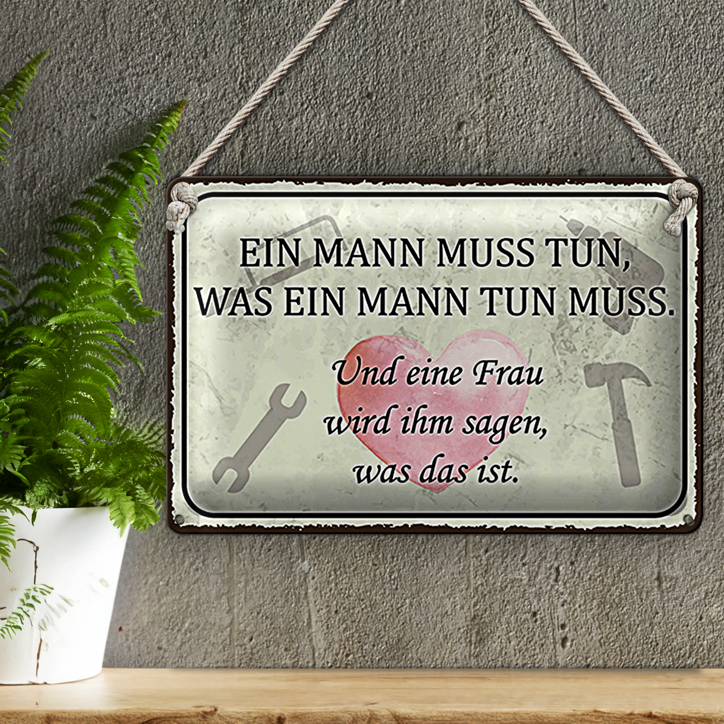 Blechschild Spruch 30x20cm Mann muss tun Frau wird sagen