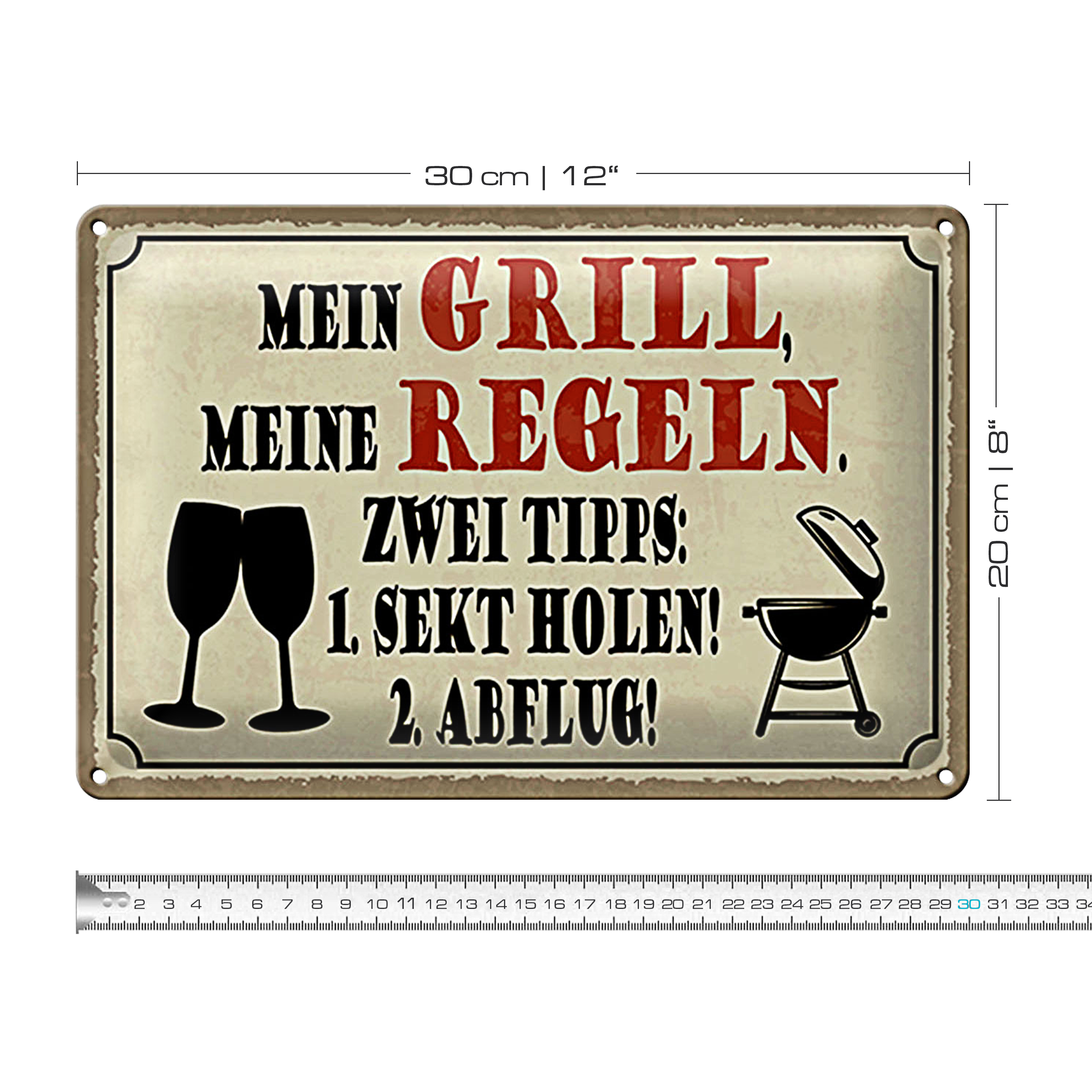 Blechschild Spruch 30x20cm mein Grill meine Regeln 2 Tipps