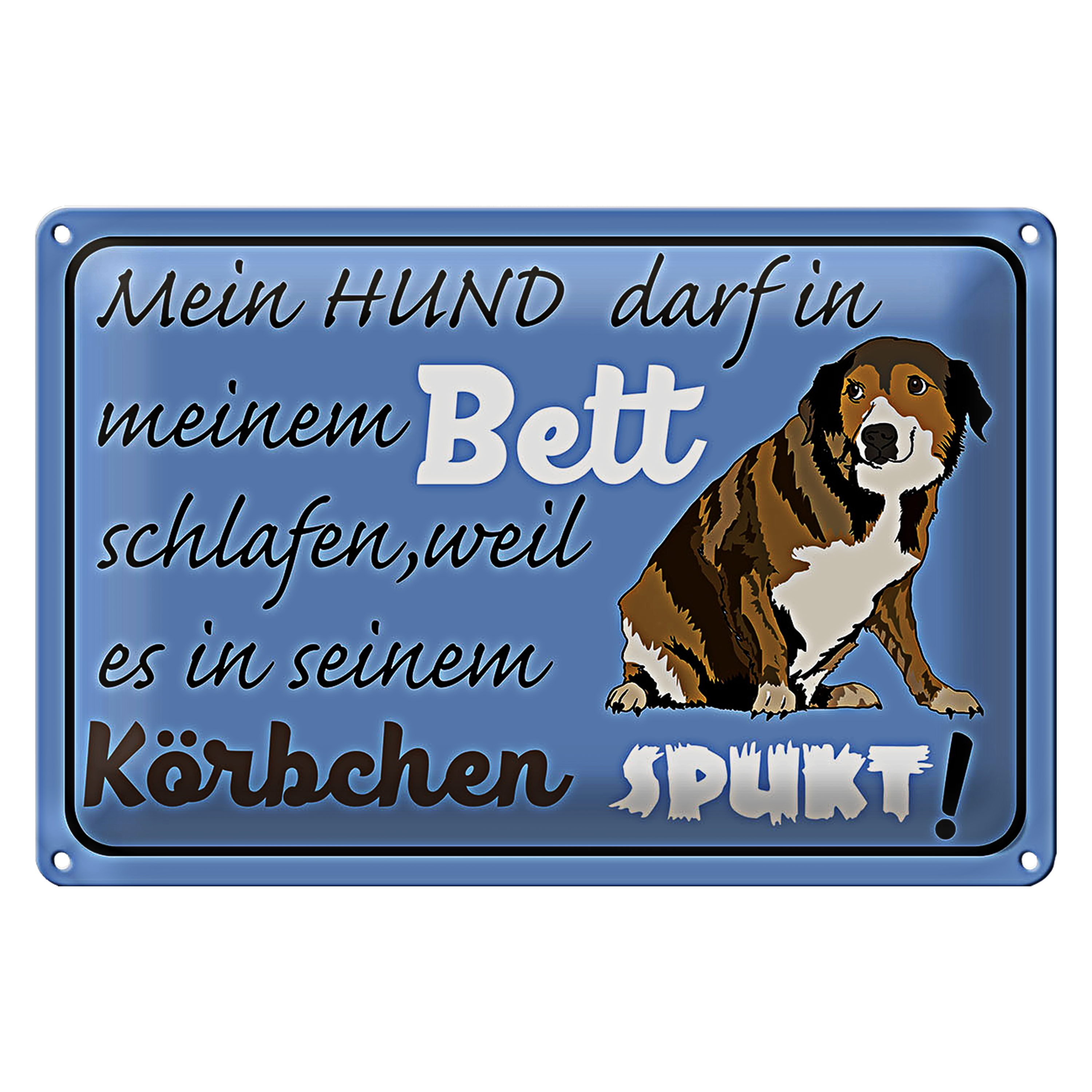 Blechschild Spruch 30x20cm mein Hund darf im Bett schlafen