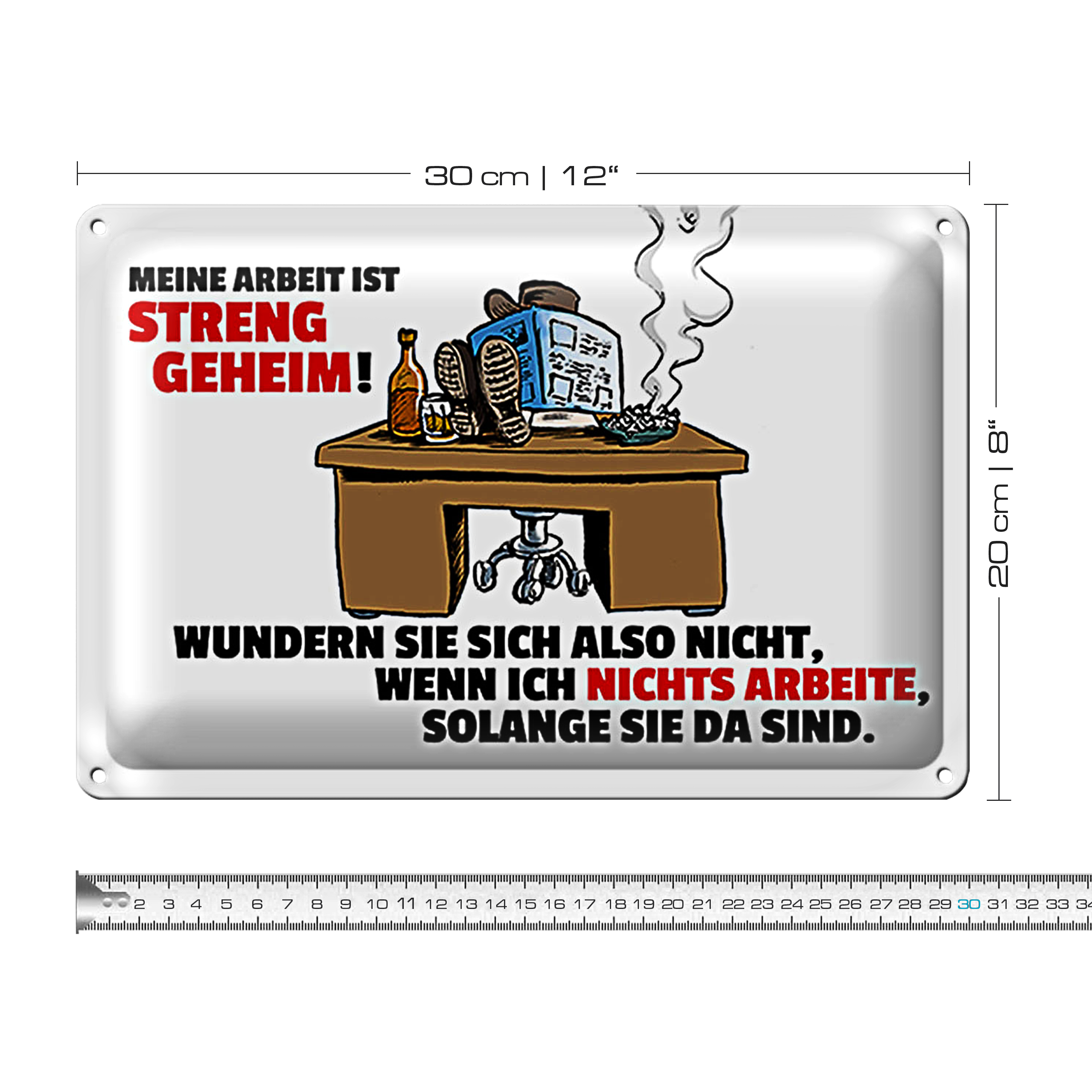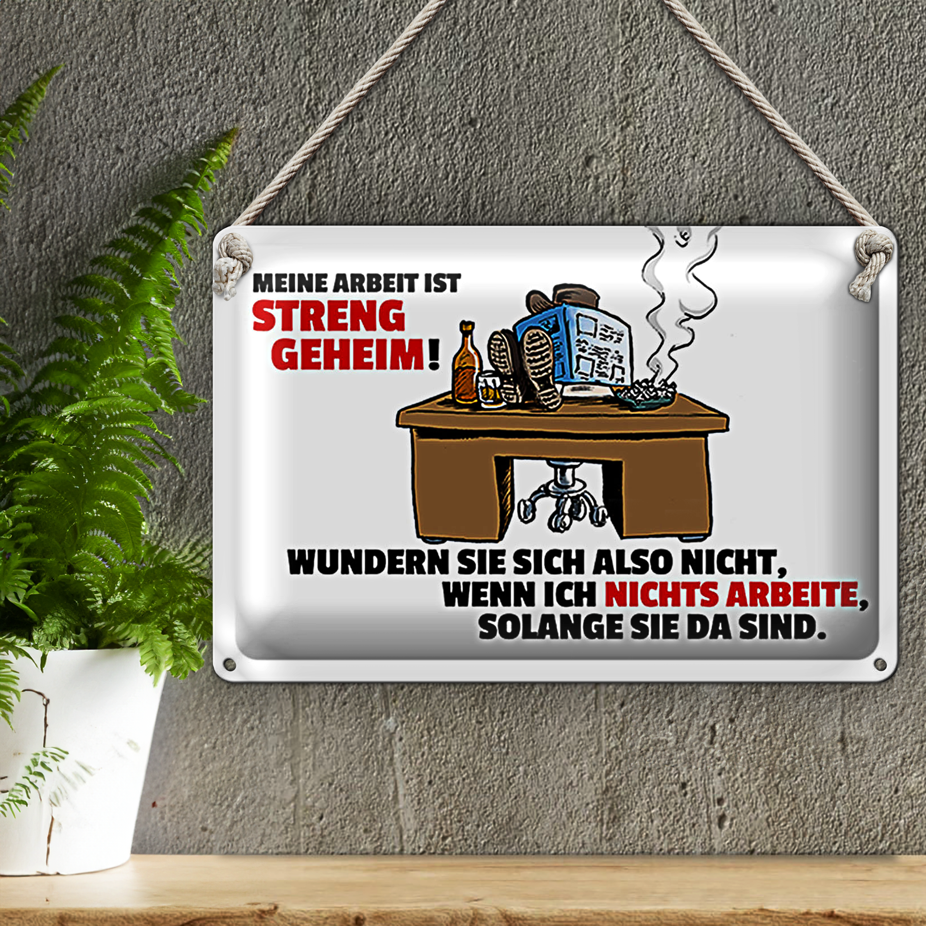 Blechschild Spruch 30x20cm Meine Arbeit ist streng geheim