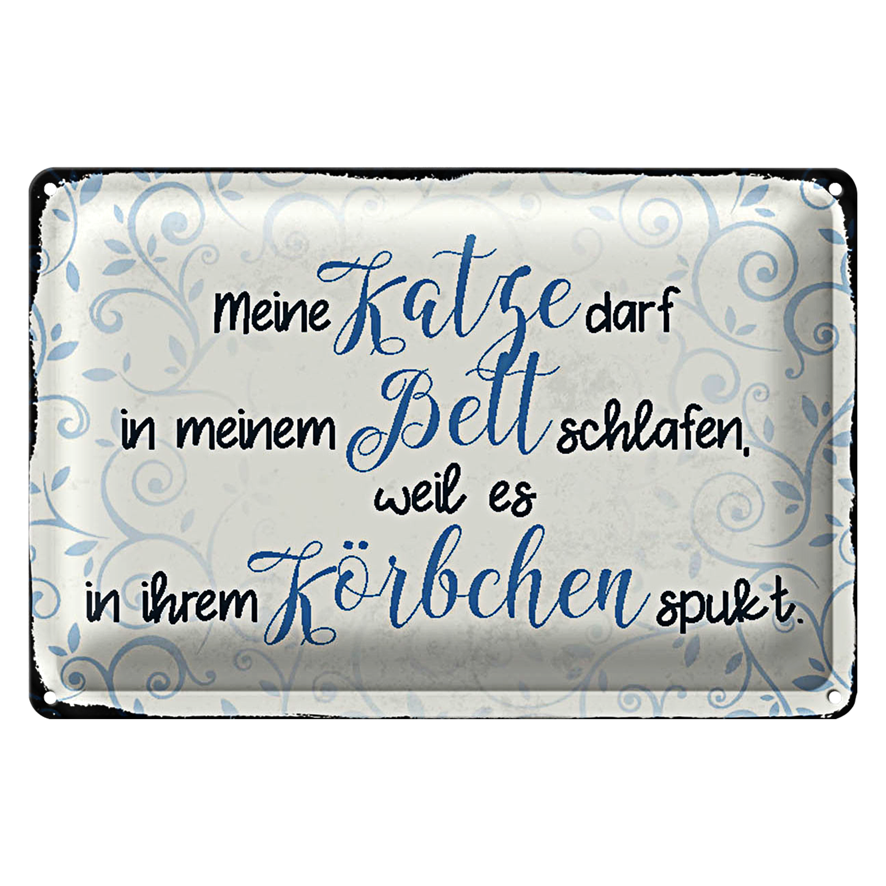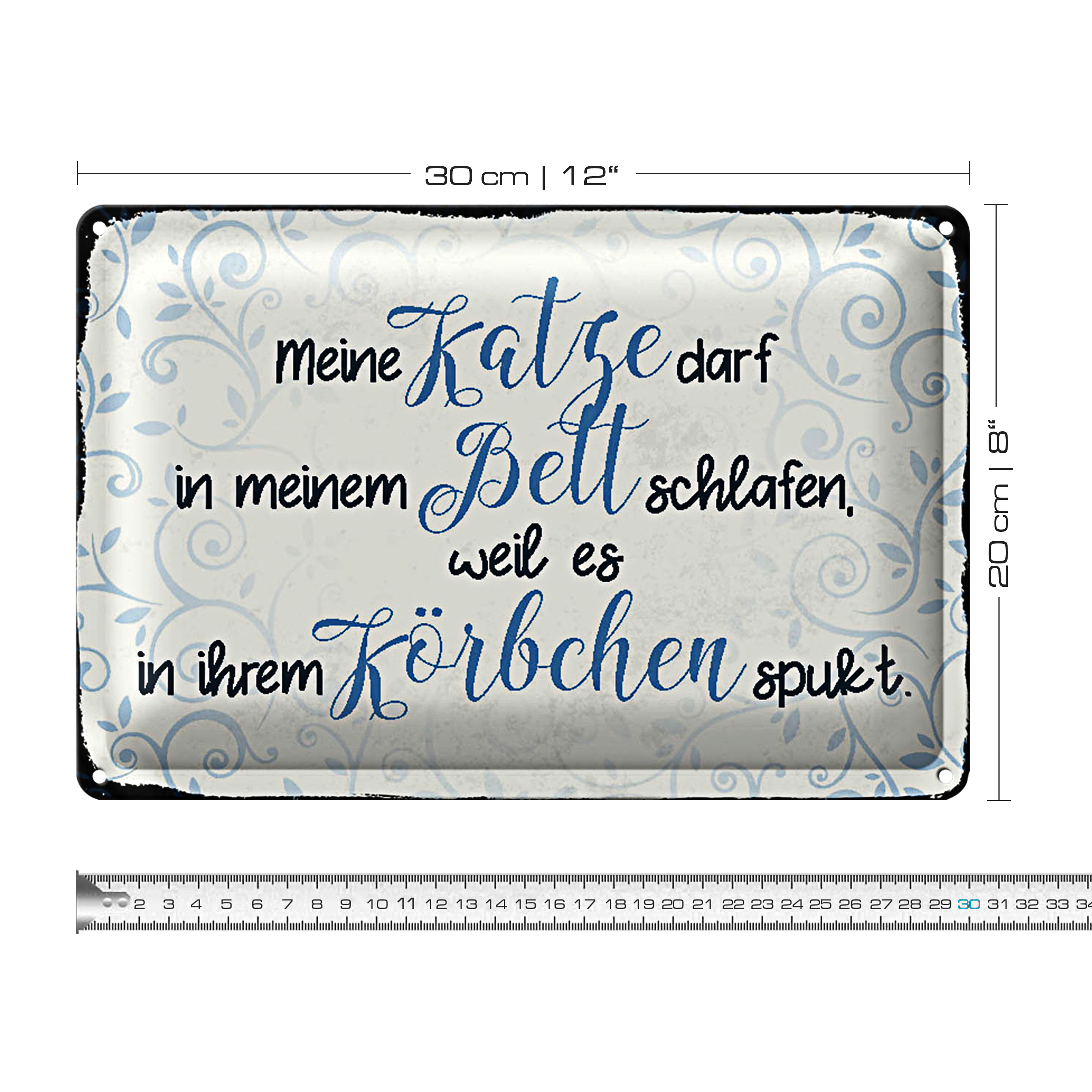 Blechschild Spruch 30x20cm meine Katze darf in meinem Bett