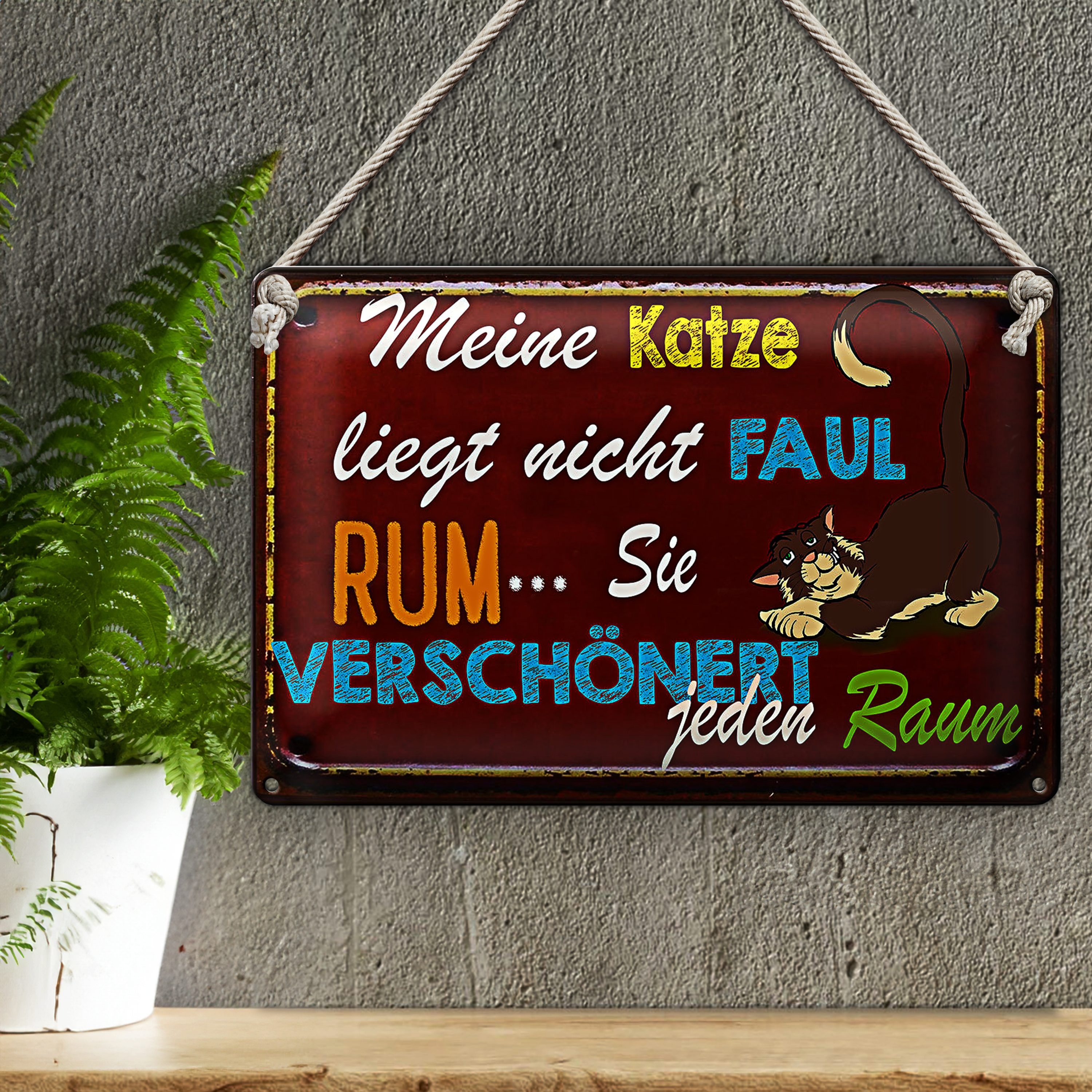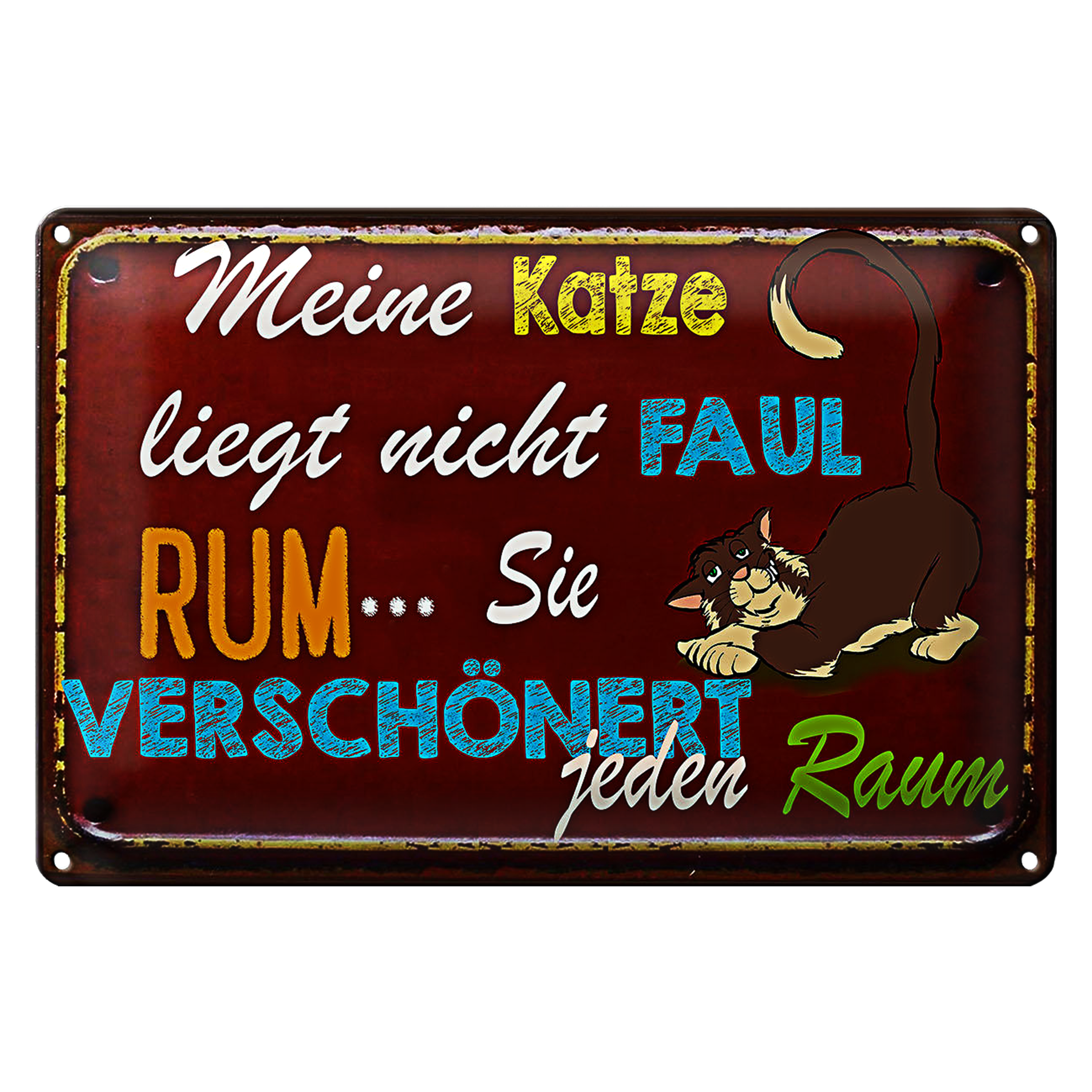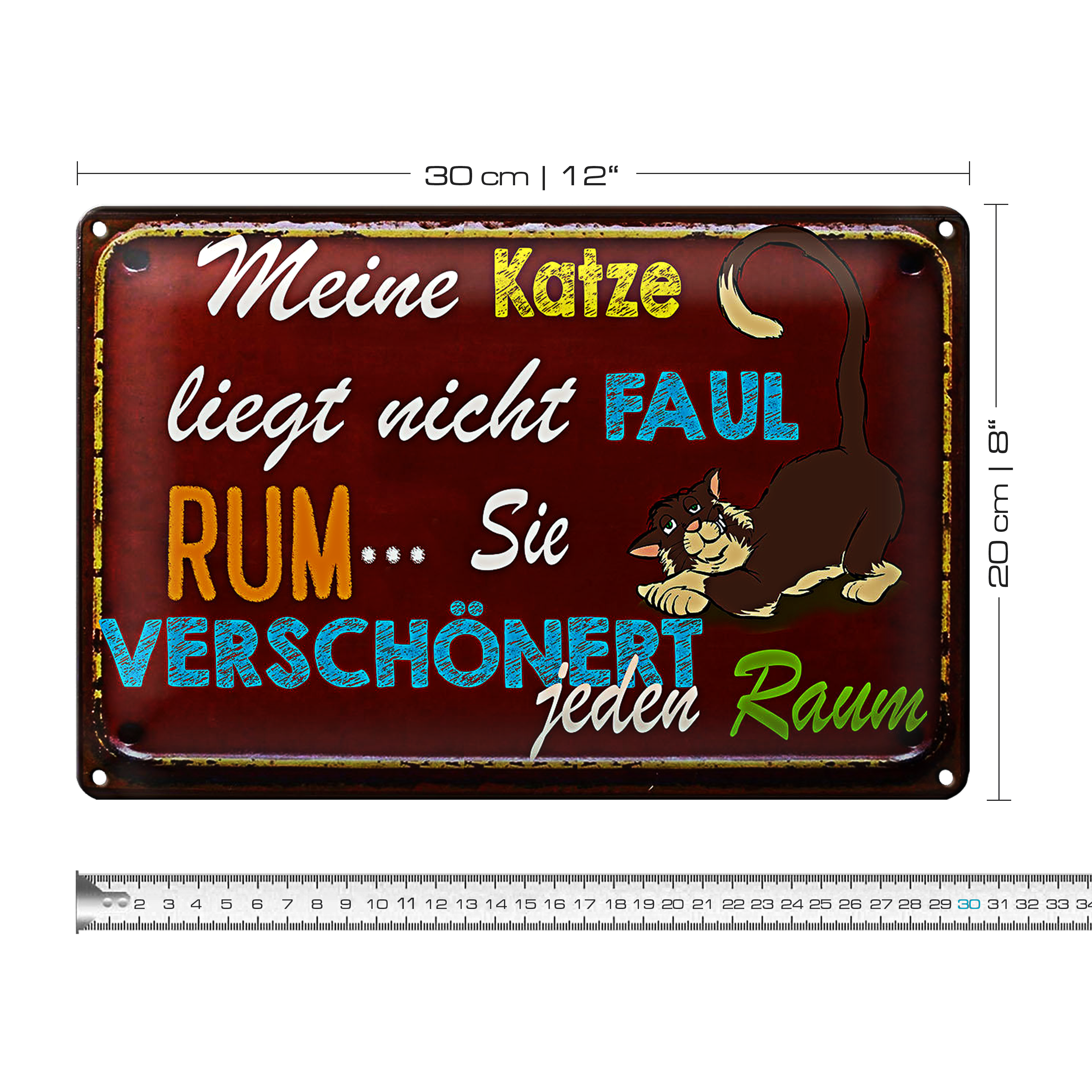 Blechschild Spruch 30x20cm meine Katze liegt nicht faul rum