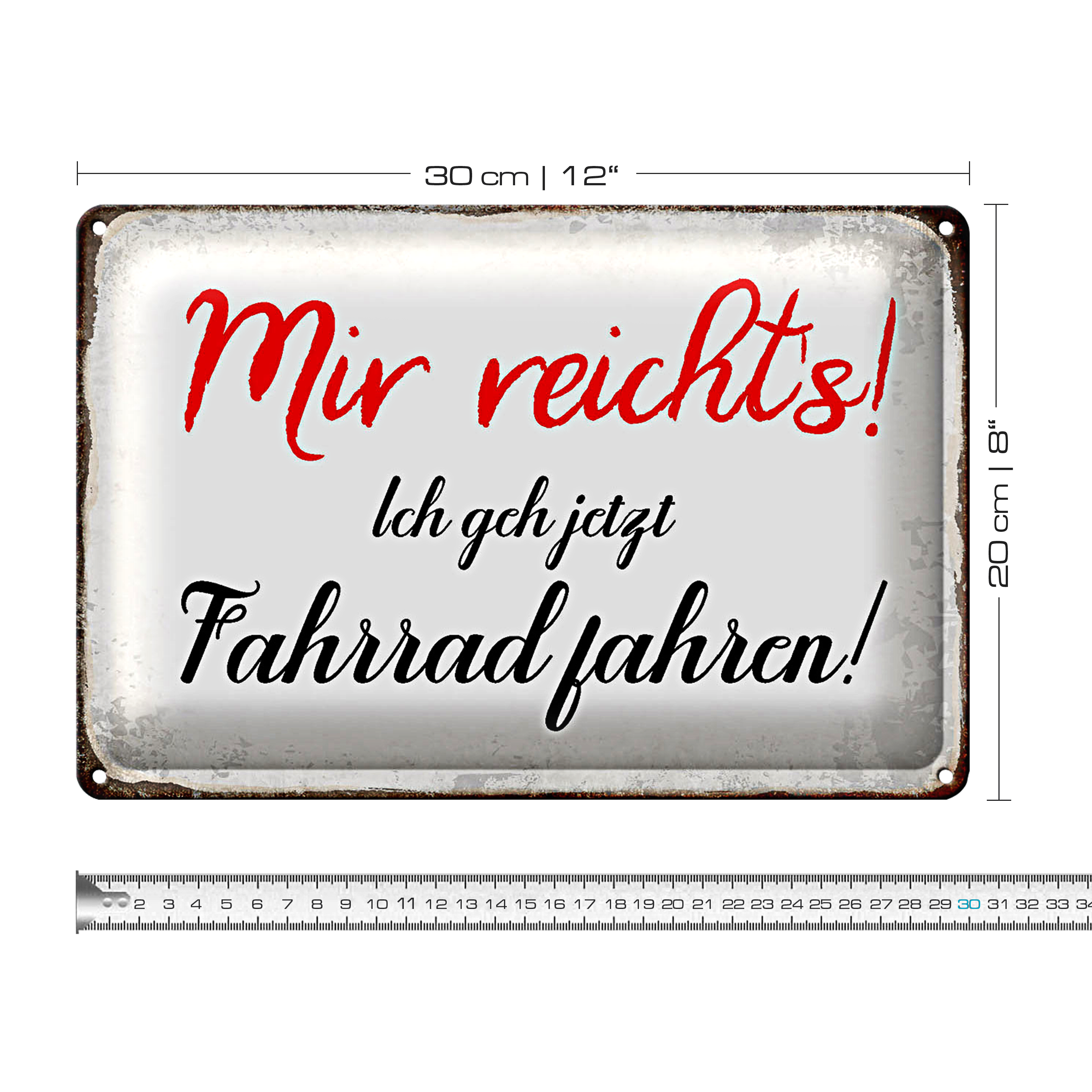 Blechschild Spruch 30x20cm mir reichts ich geh Fahrrad