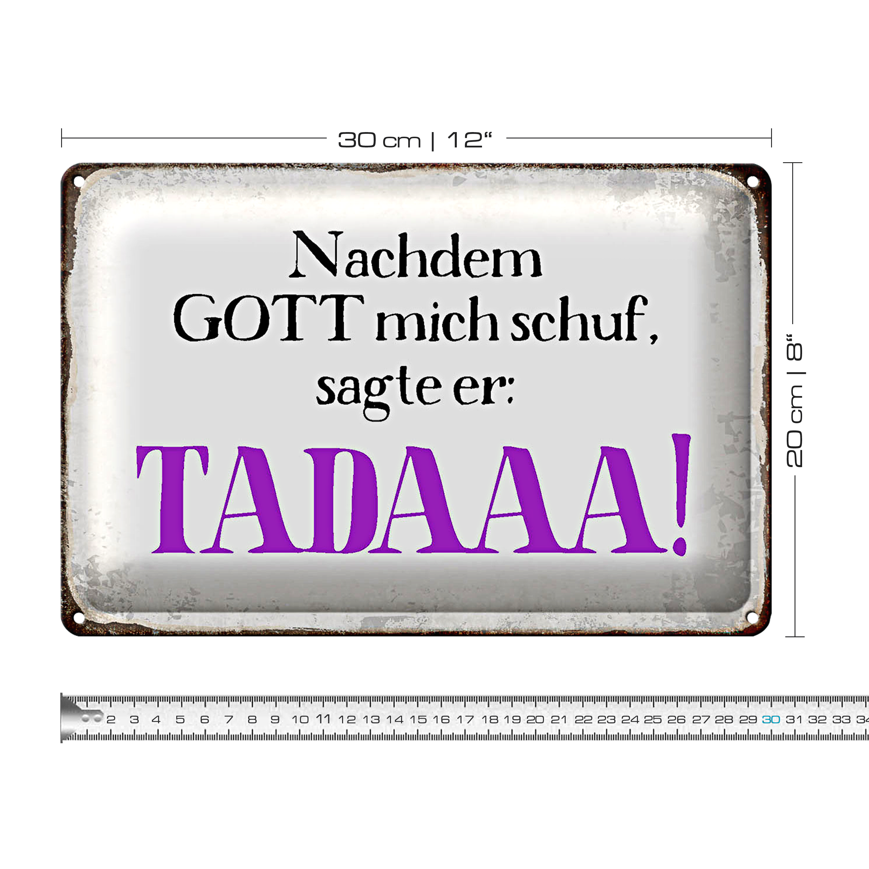 Blechschild Spruch 30x20cm nachdem Gott mich schuf sagte er