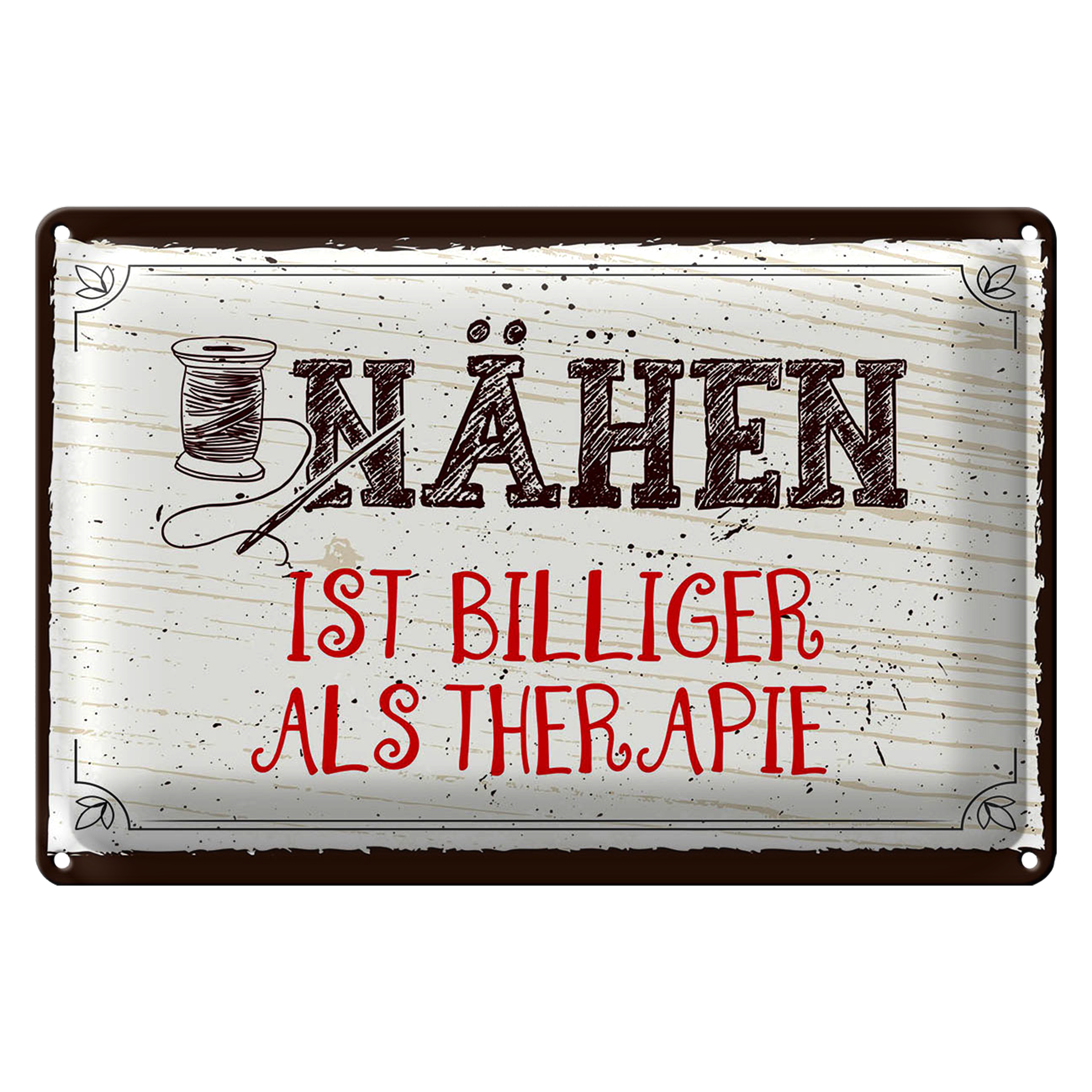 Blechschild Spruch 30x20cm Nähen ist Billiger als Therapie