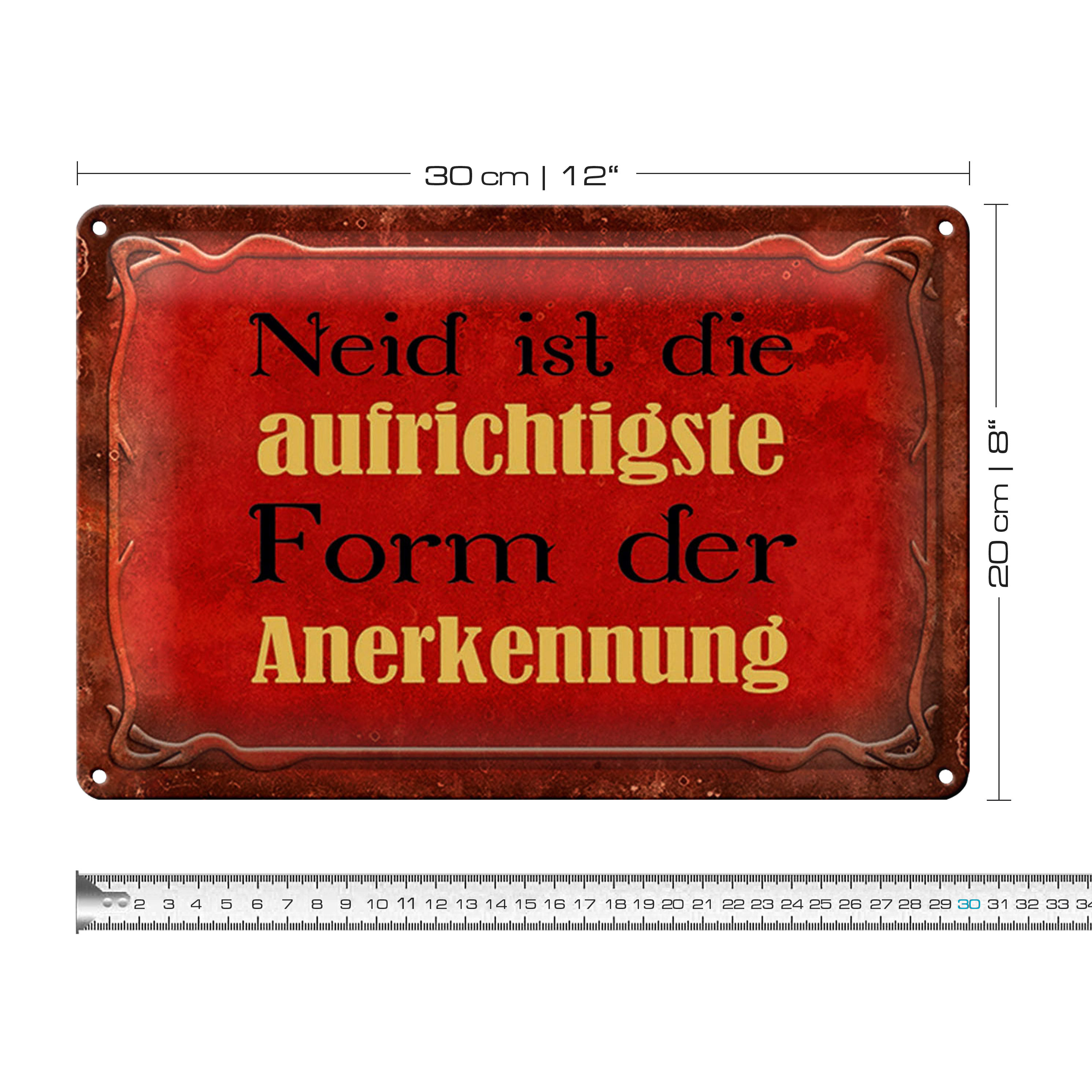 Blechschild Spruch 30x20cm Neid ist Form der Anerkennung