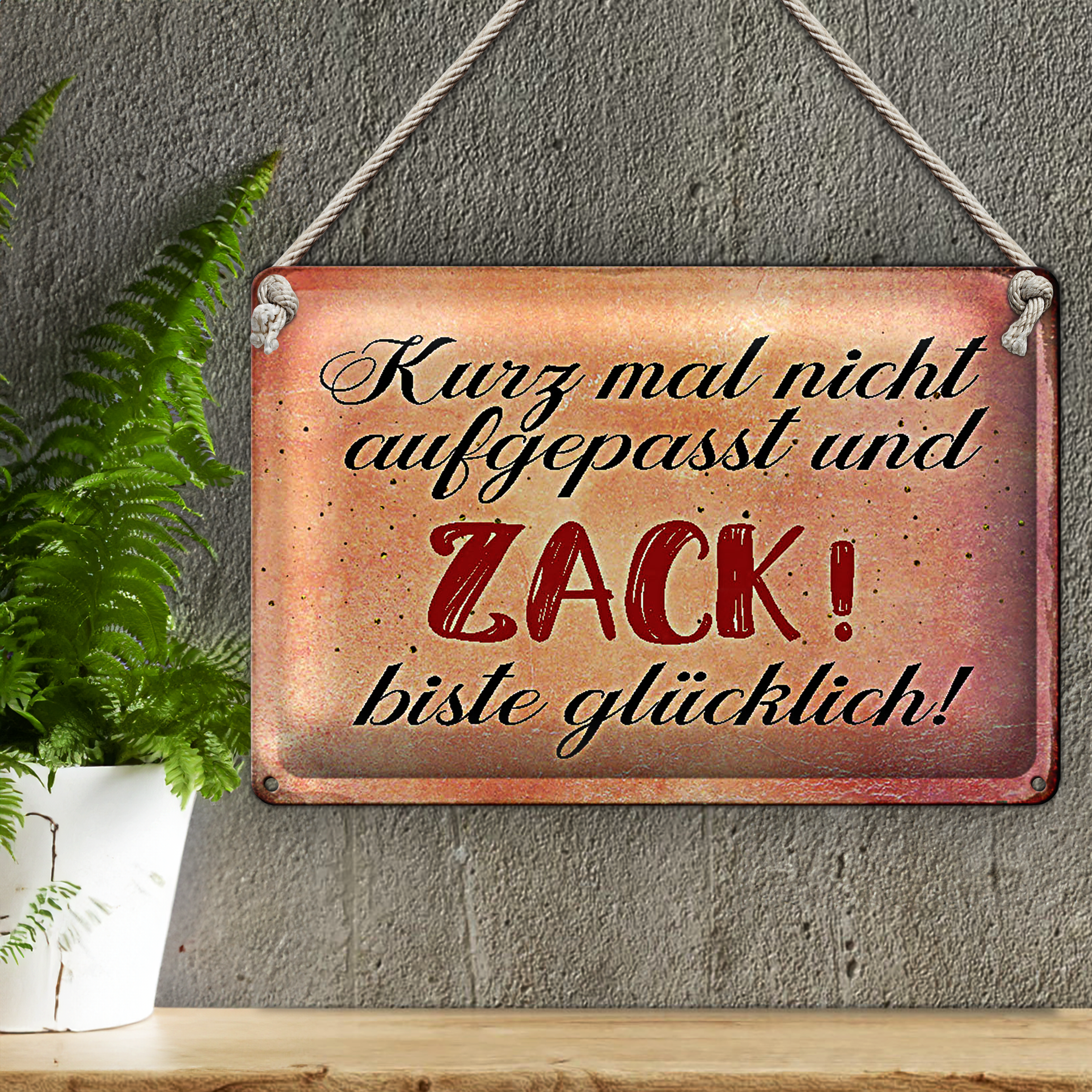 Blechschild Spruch 30x20cm nicht aufgepasst und glücklich