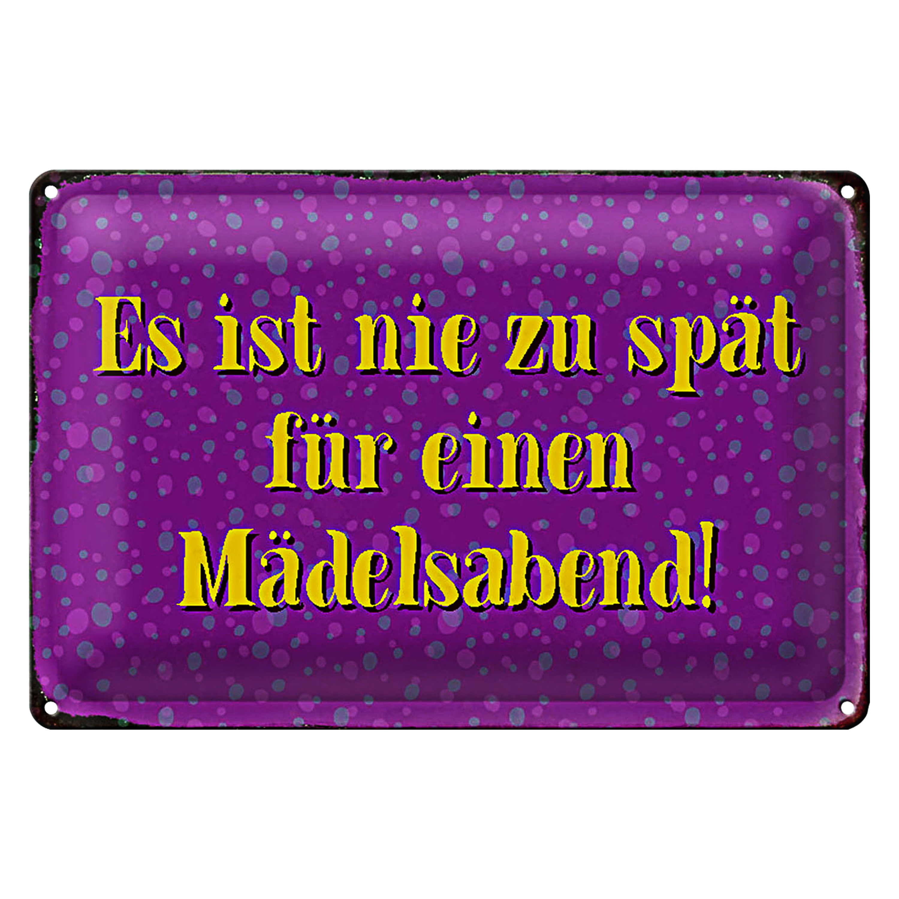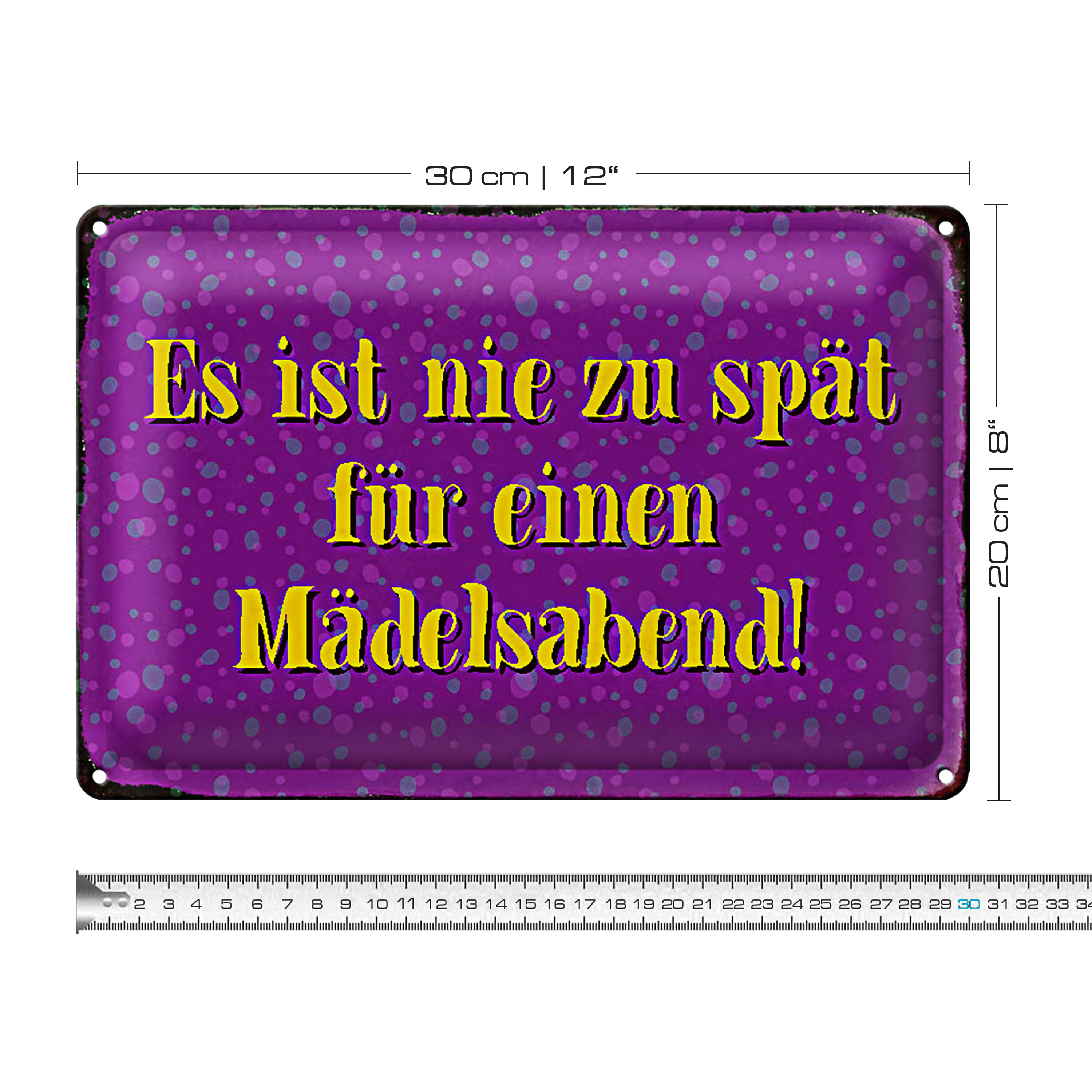 Blechschild Spruch 30x20cm nie zu spät für Mädelsabend
