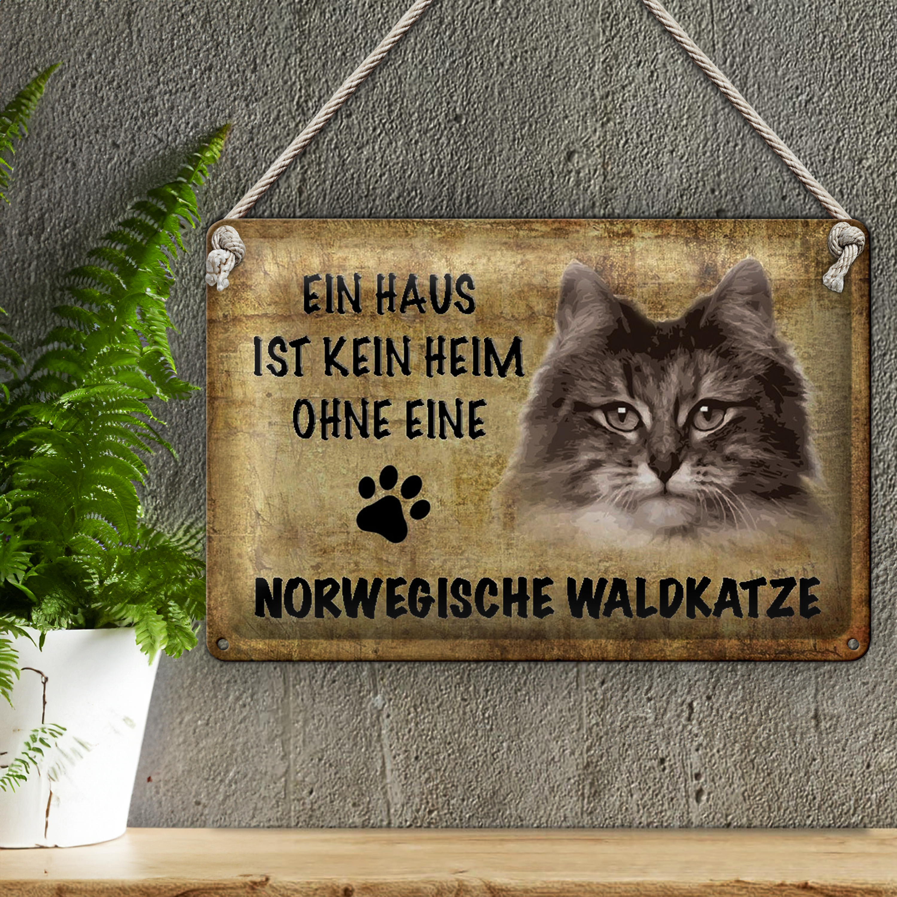 Blechschild Spruch 30x20cm Norvegische Waldkatze Katze