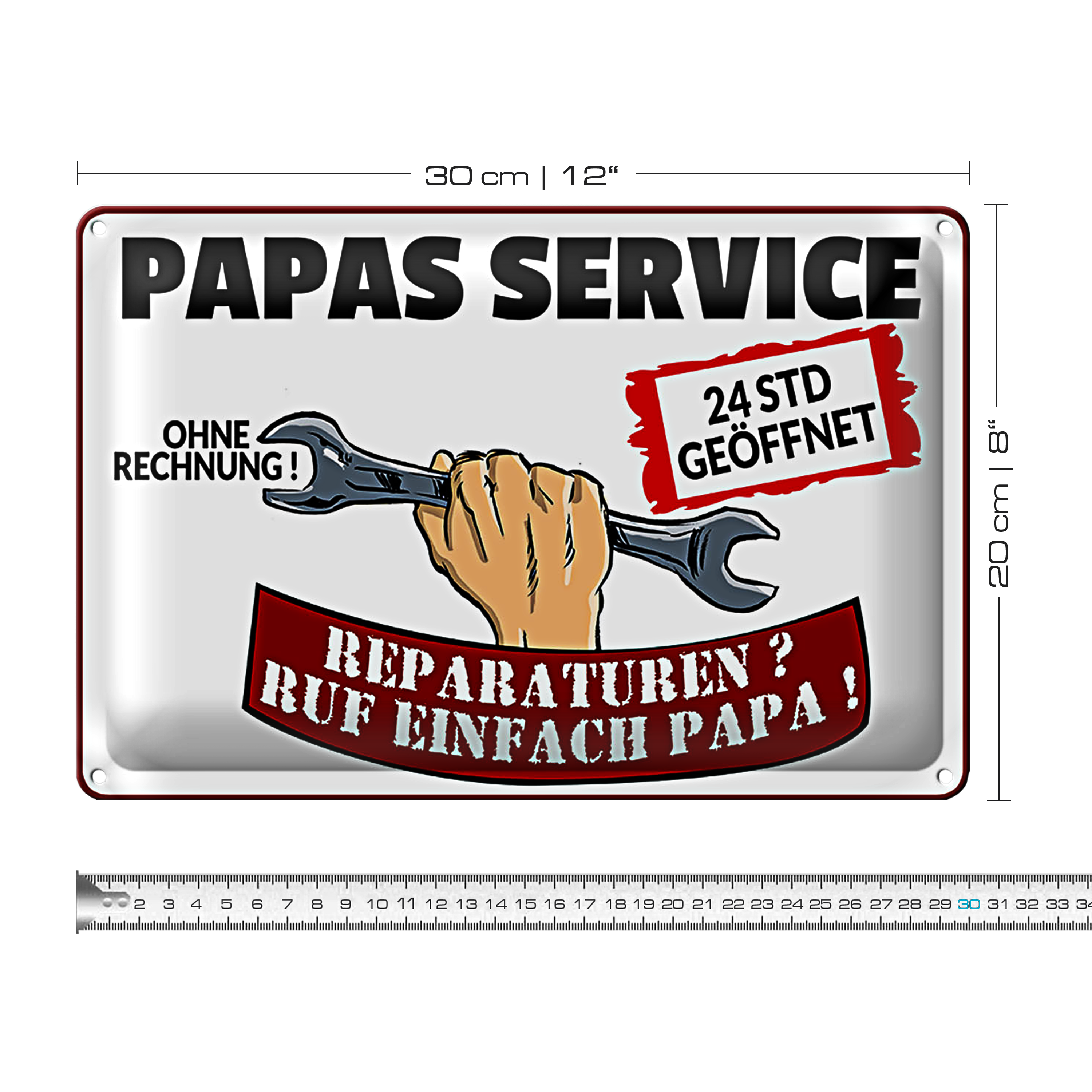 Blechschild Spruch 30x20cm Papas Service ohne Rechnung