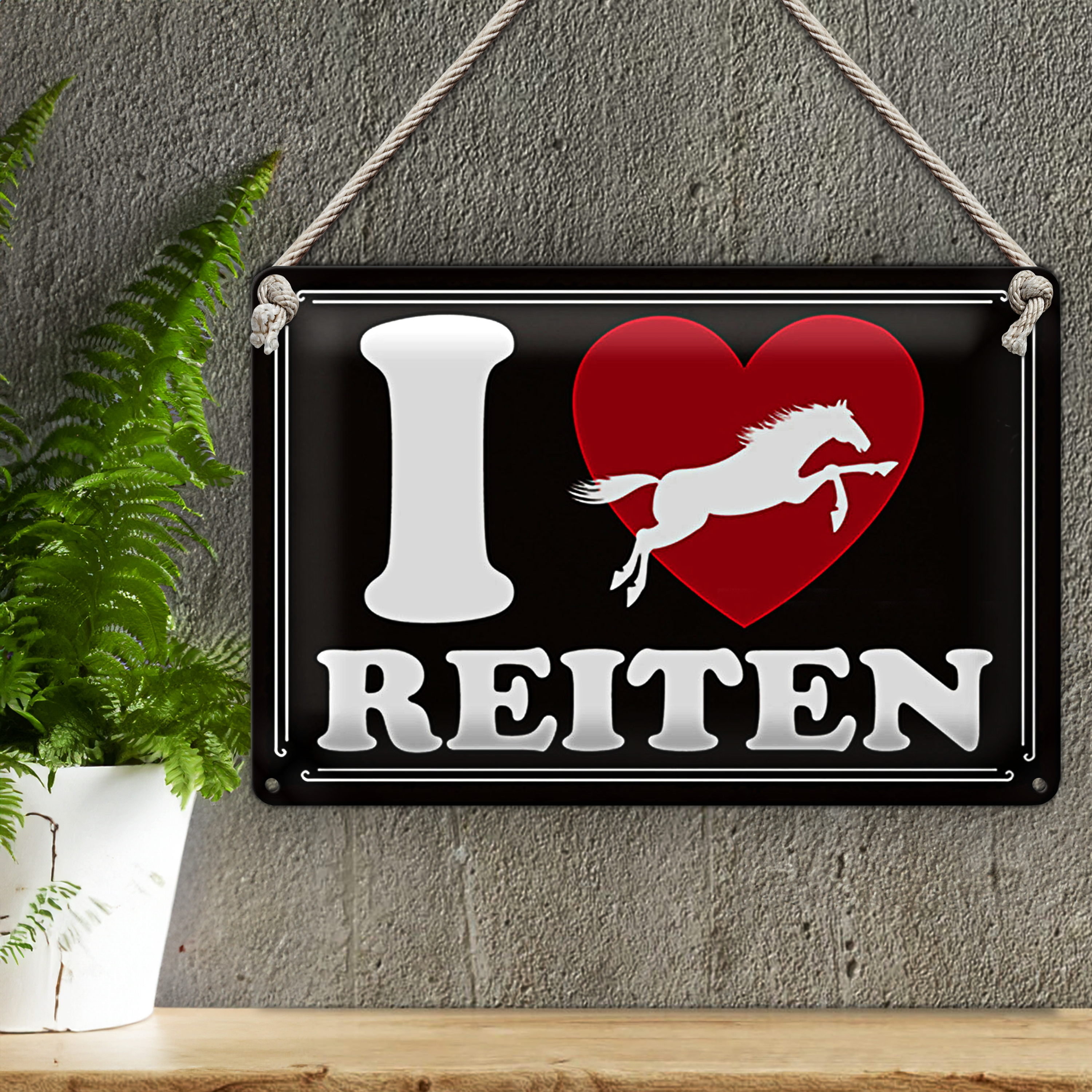 Blechschild Spruch 30x20cm Pferde i love reiten Herz
