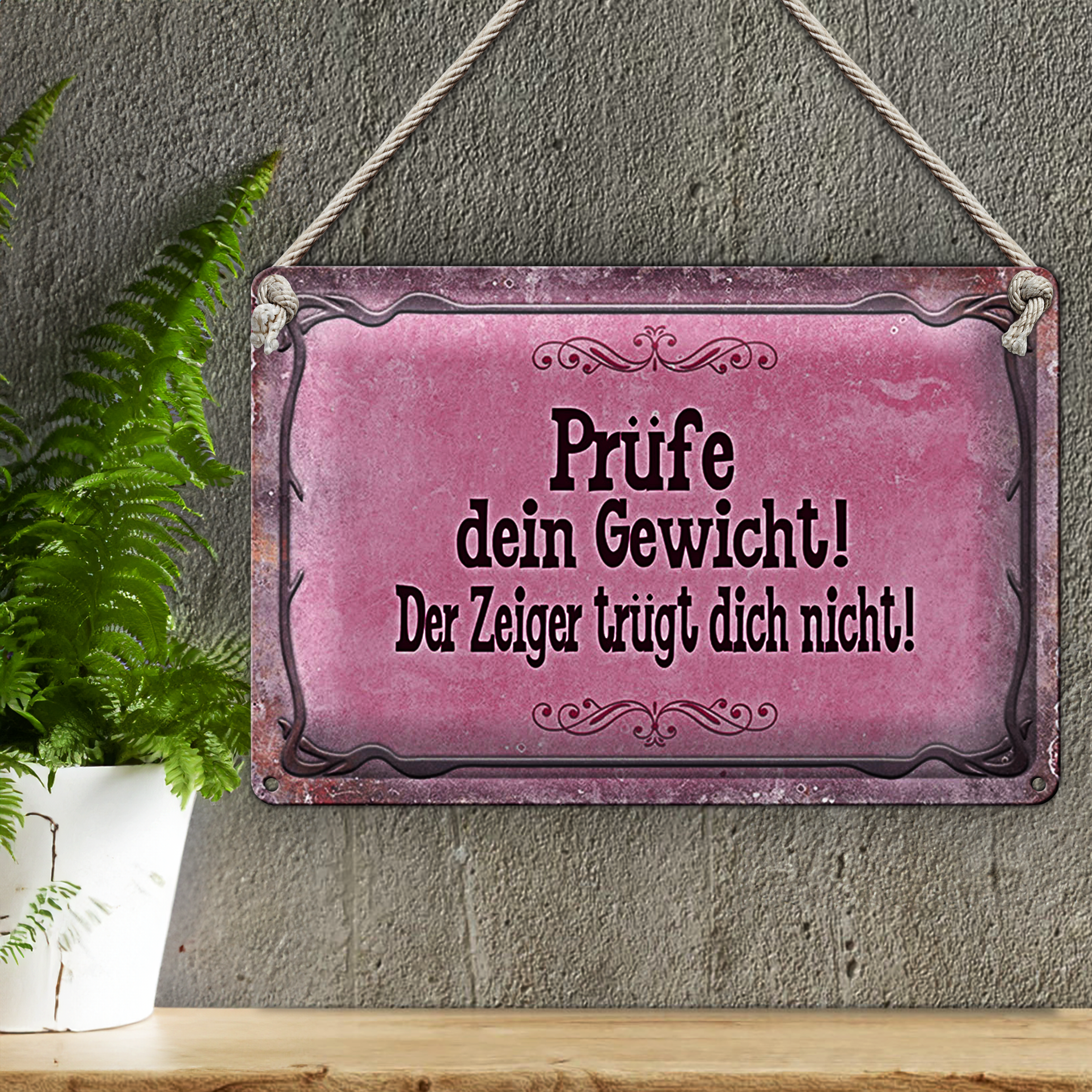 Blechschild Spruch 30x20cm Prüfe dein Gewicht der Zeiger