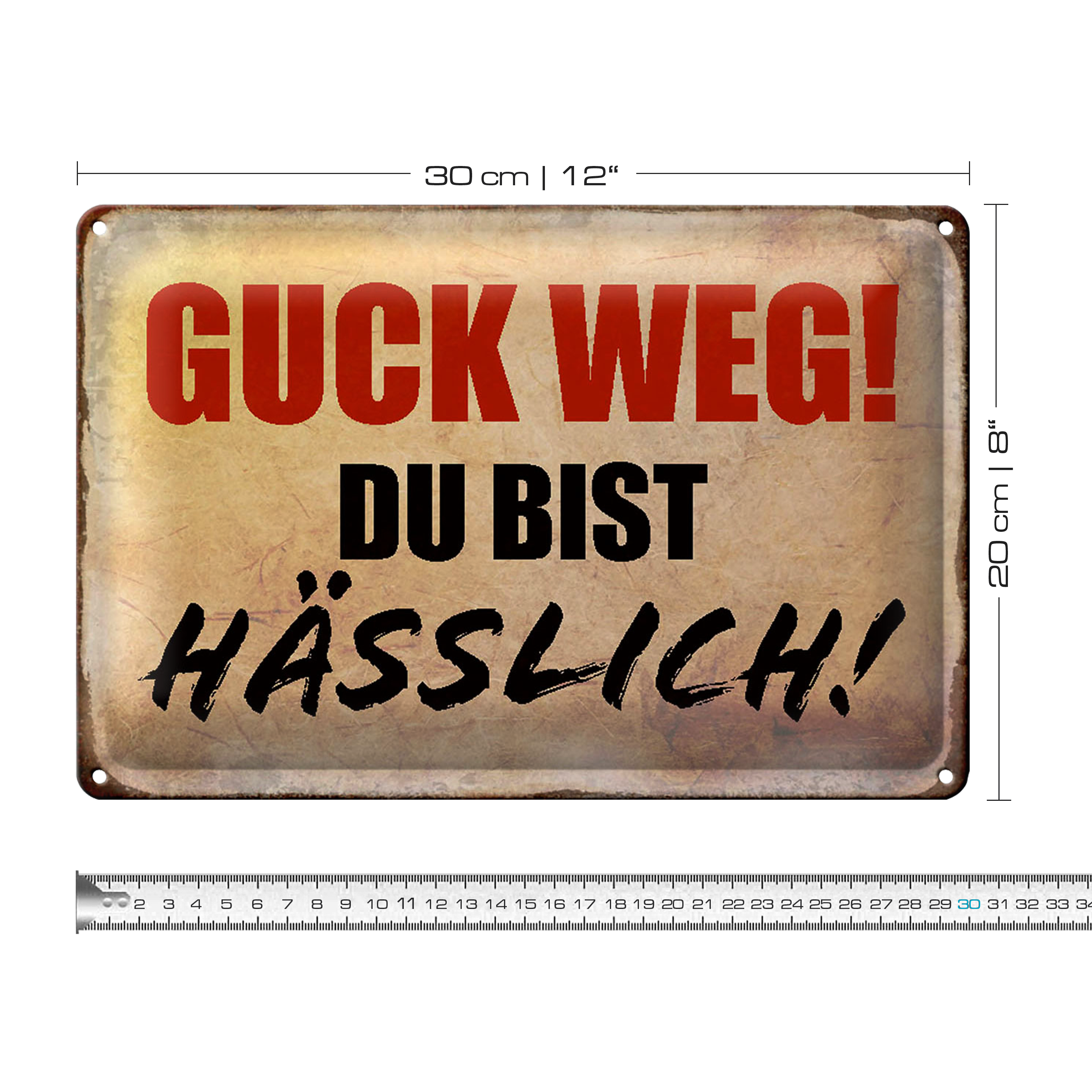 Blechschild Spruch 30x20cm quck weg du bist hässlich Retro