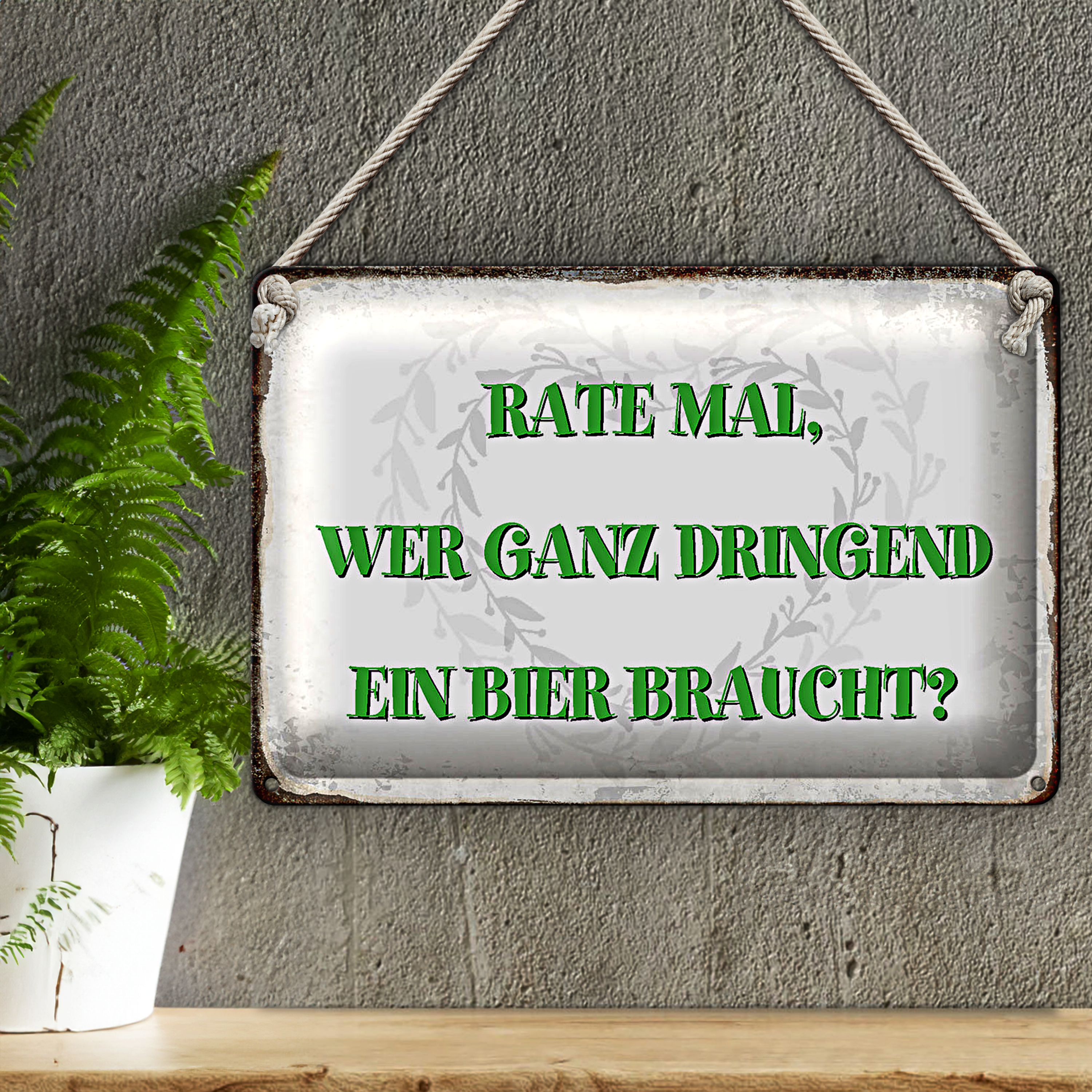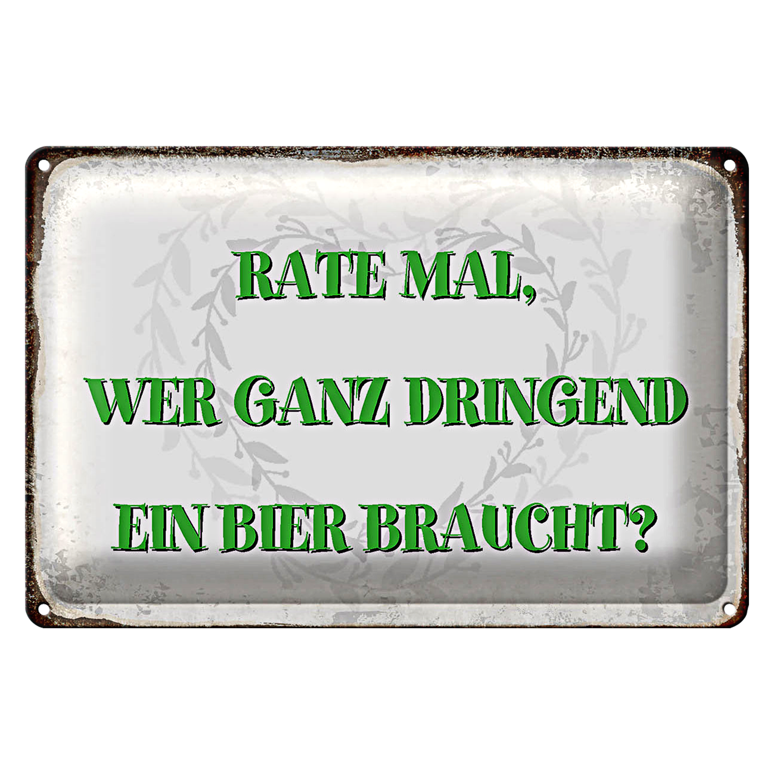 Blechschild Spruch 30x20cm rate wer dringend Bier braucht
