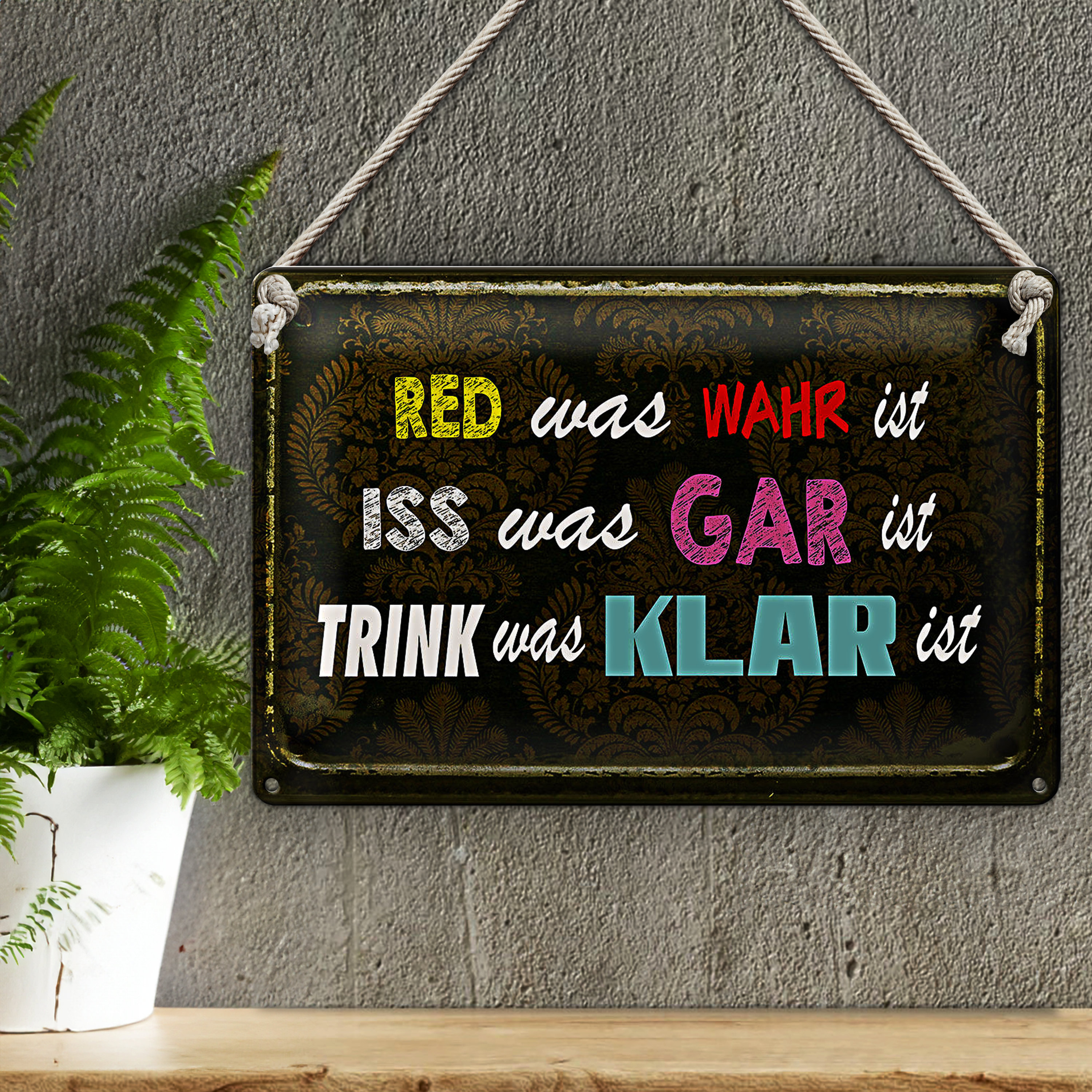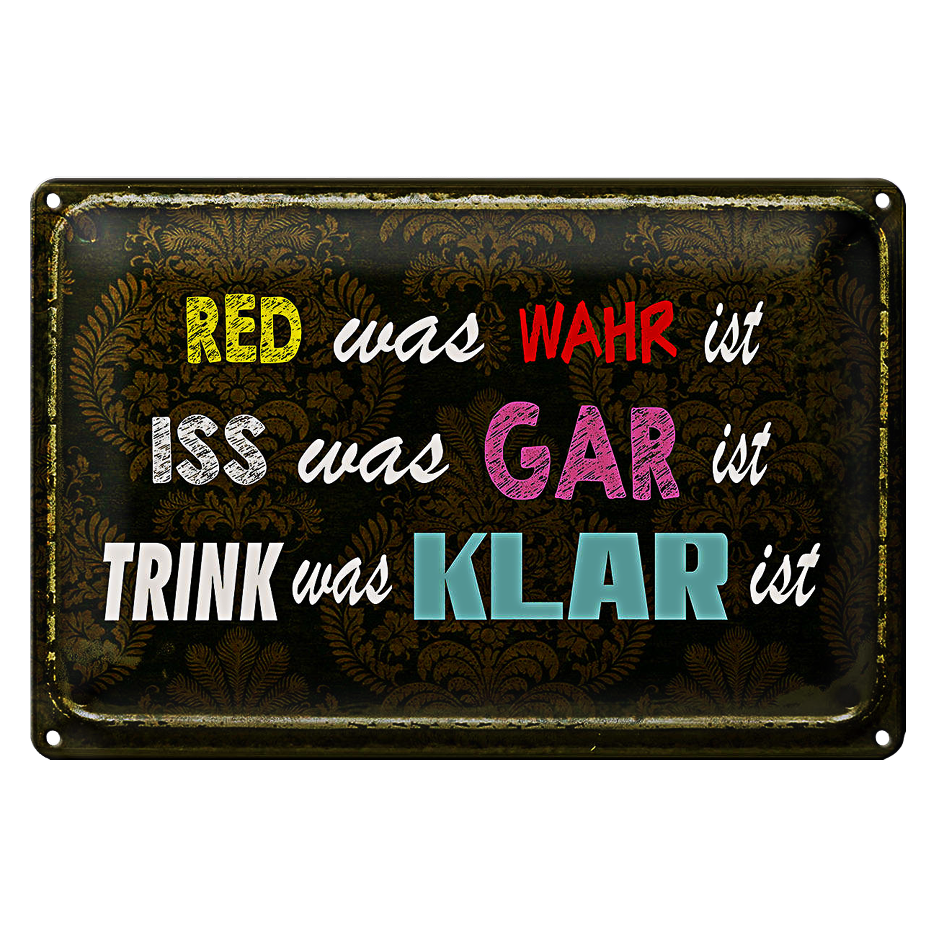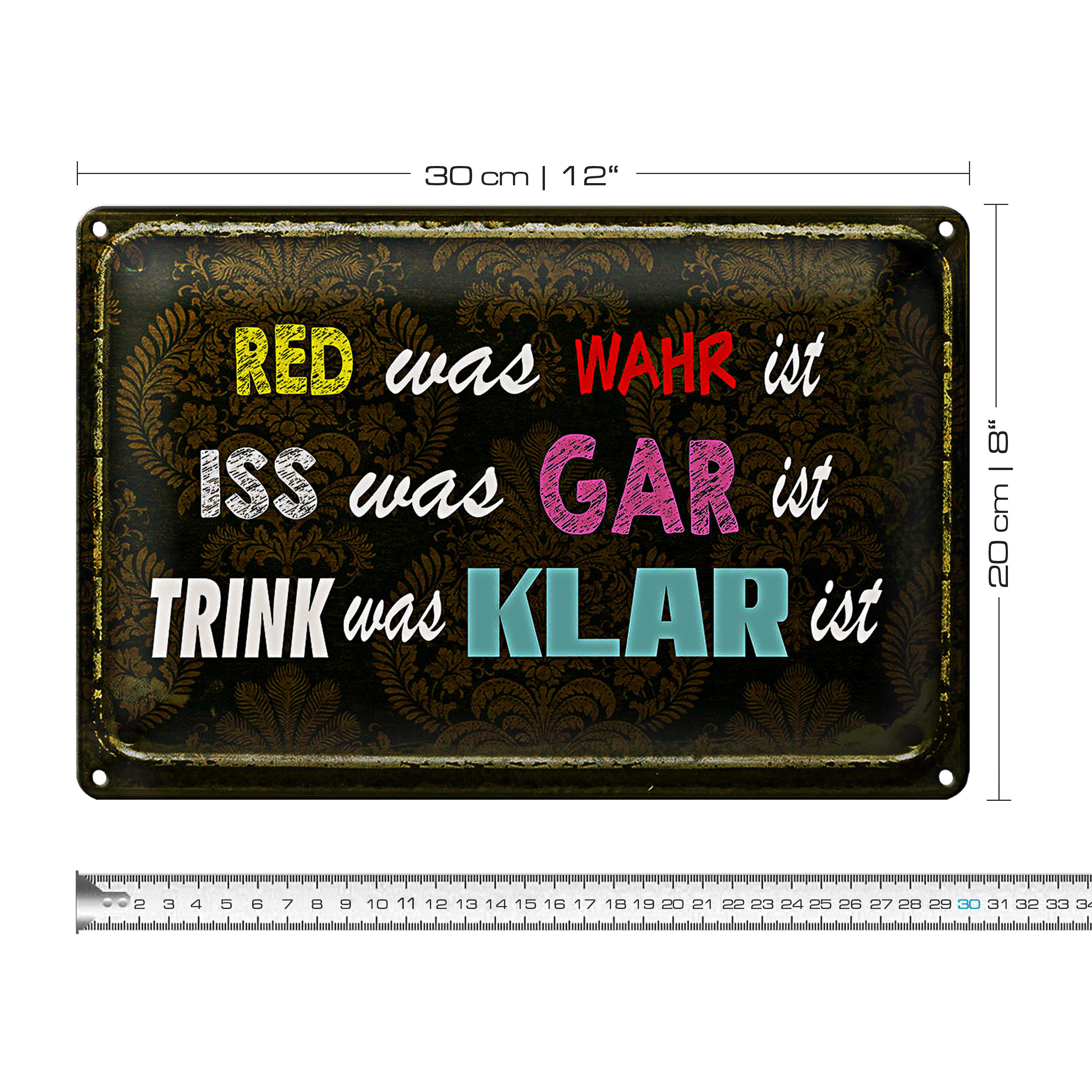 Blechschild Spruch 30x20cm red was wahr iss gar trink klar