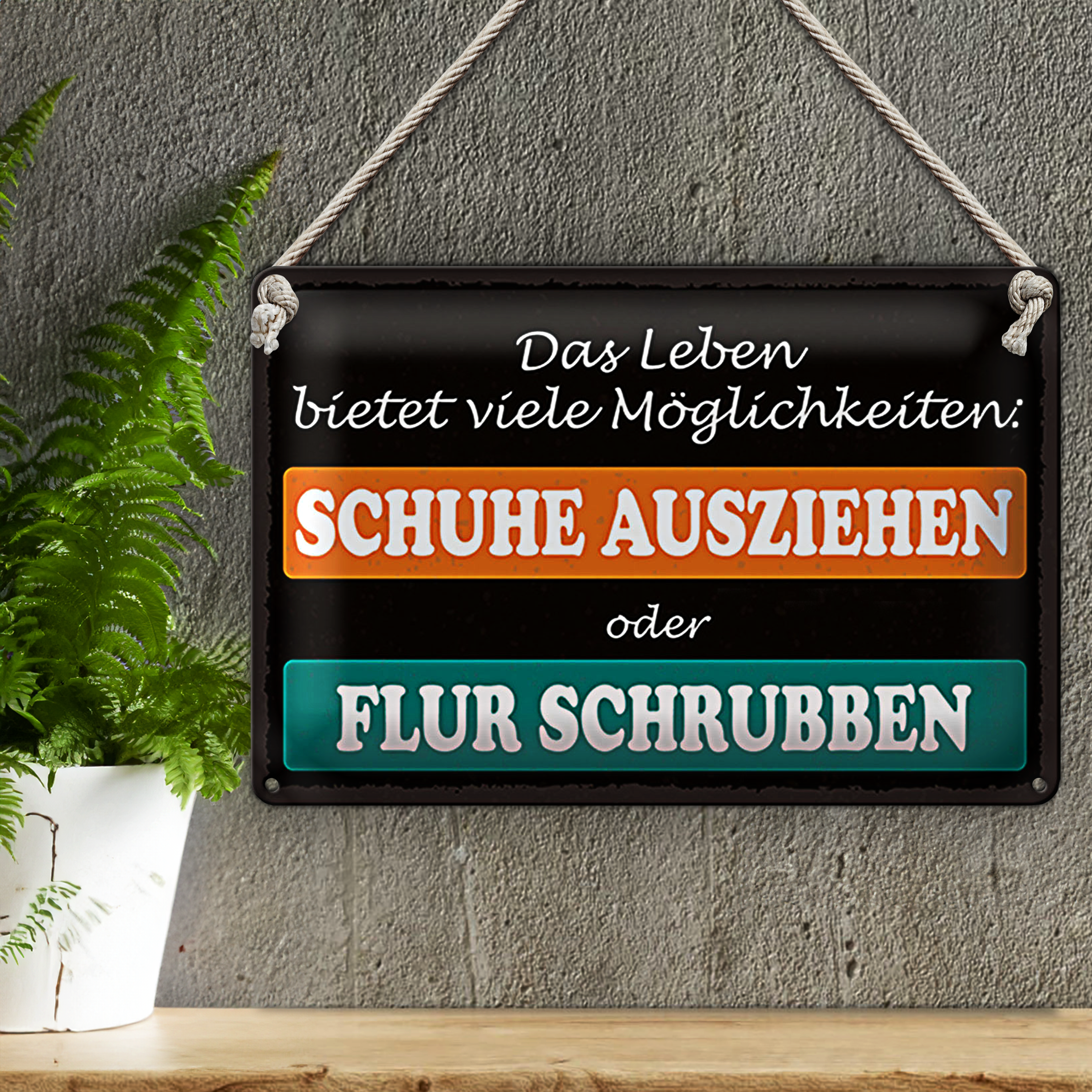 Blechschild Spruch 30x20cm Schuhe ausziehen Flur schrubben