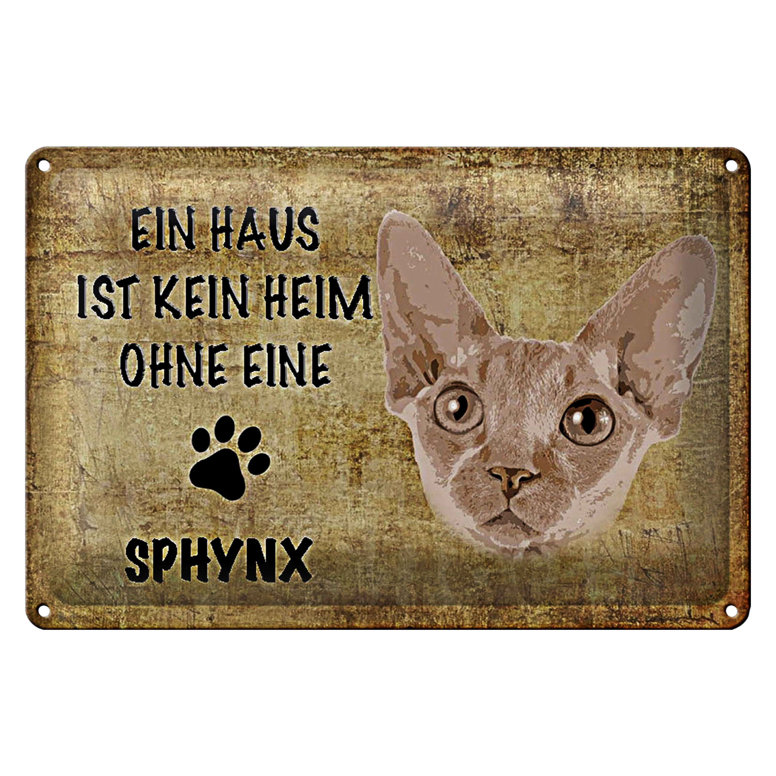 Blechschild Spruch 30x20cm Sphynx Katze ohne kein Heim