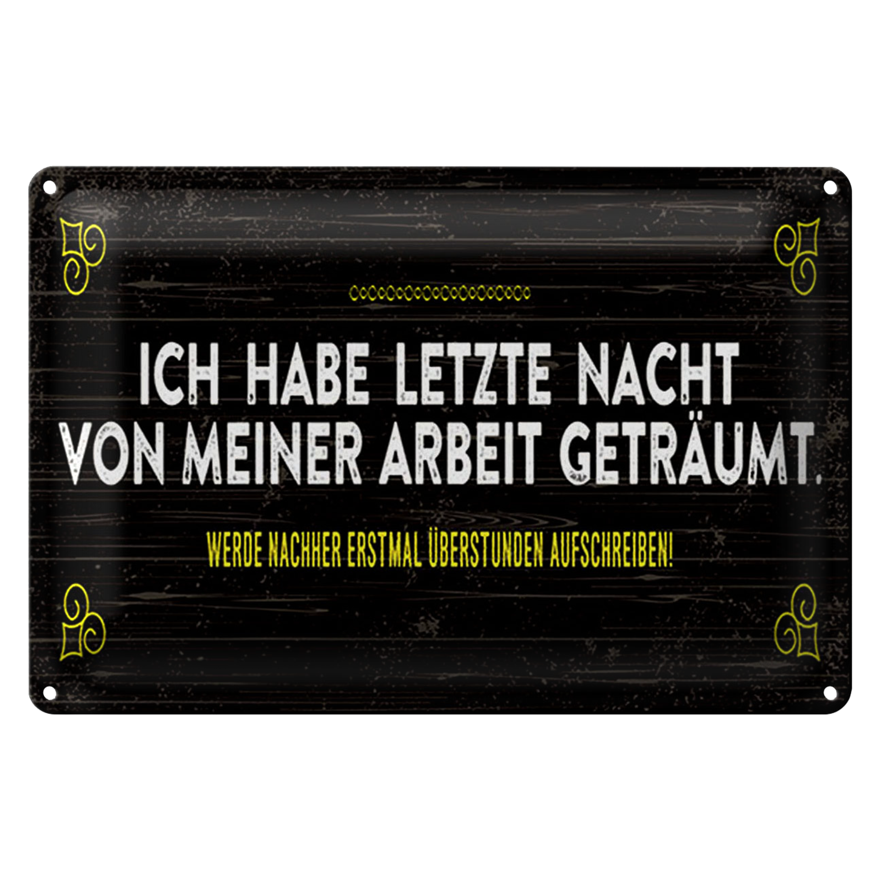 Blechschild Spruch 30x20cm von Arbeit geträumt schreibe Überstunden auf