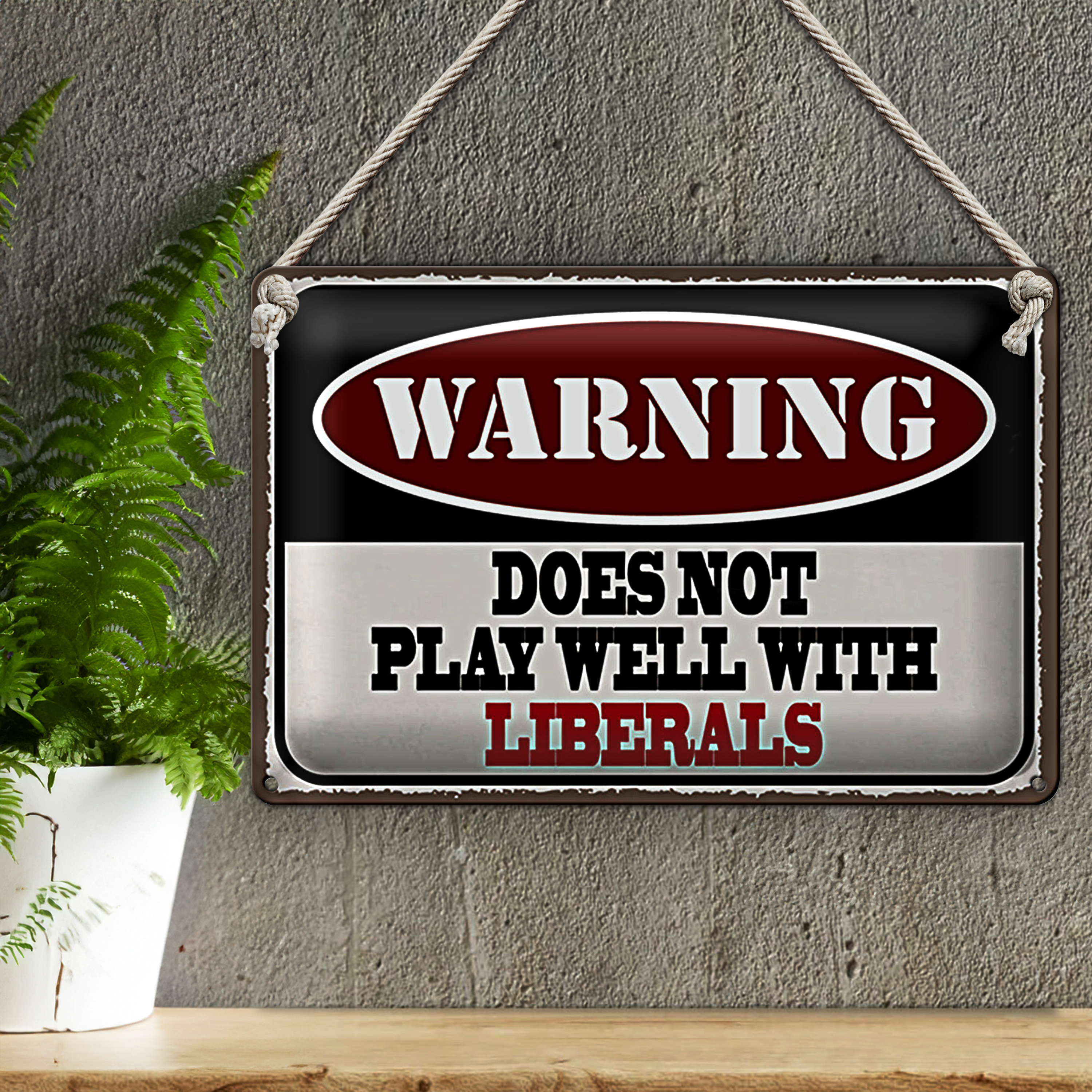 Blechschild Spruch 30x20cm Warning does not play with liberals