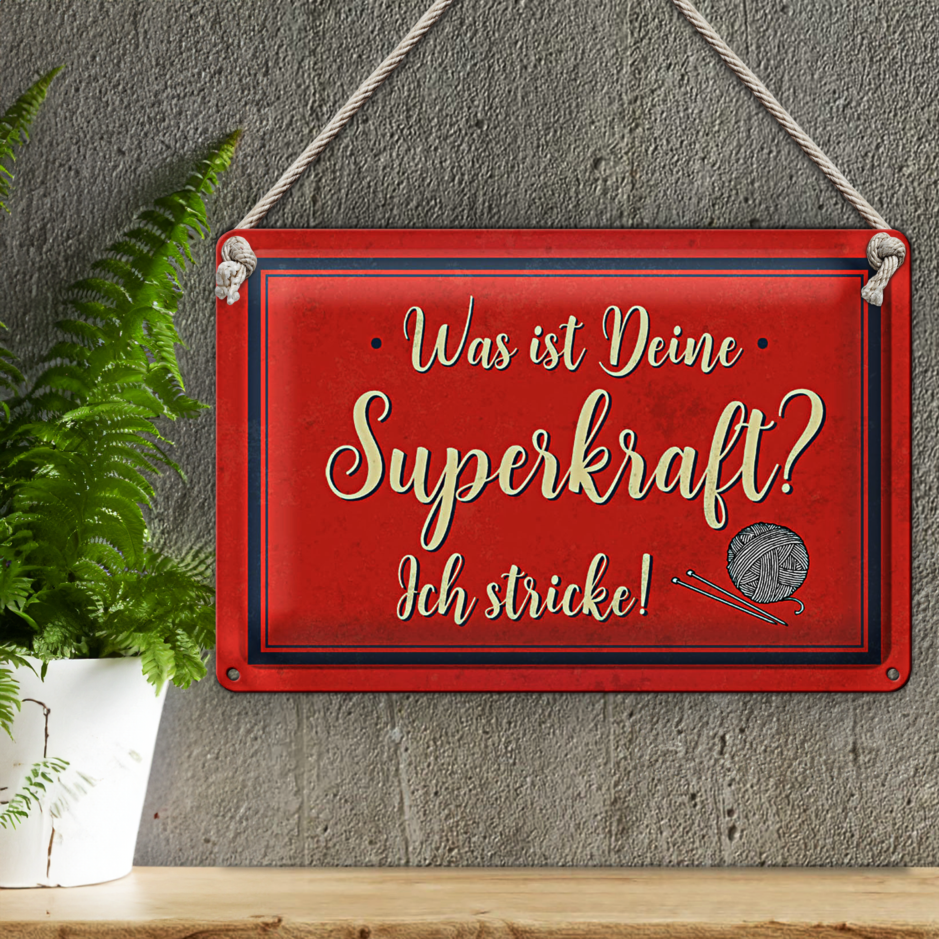 Blechschild Spruch 30x20cm was deine Superkraft ich stricke