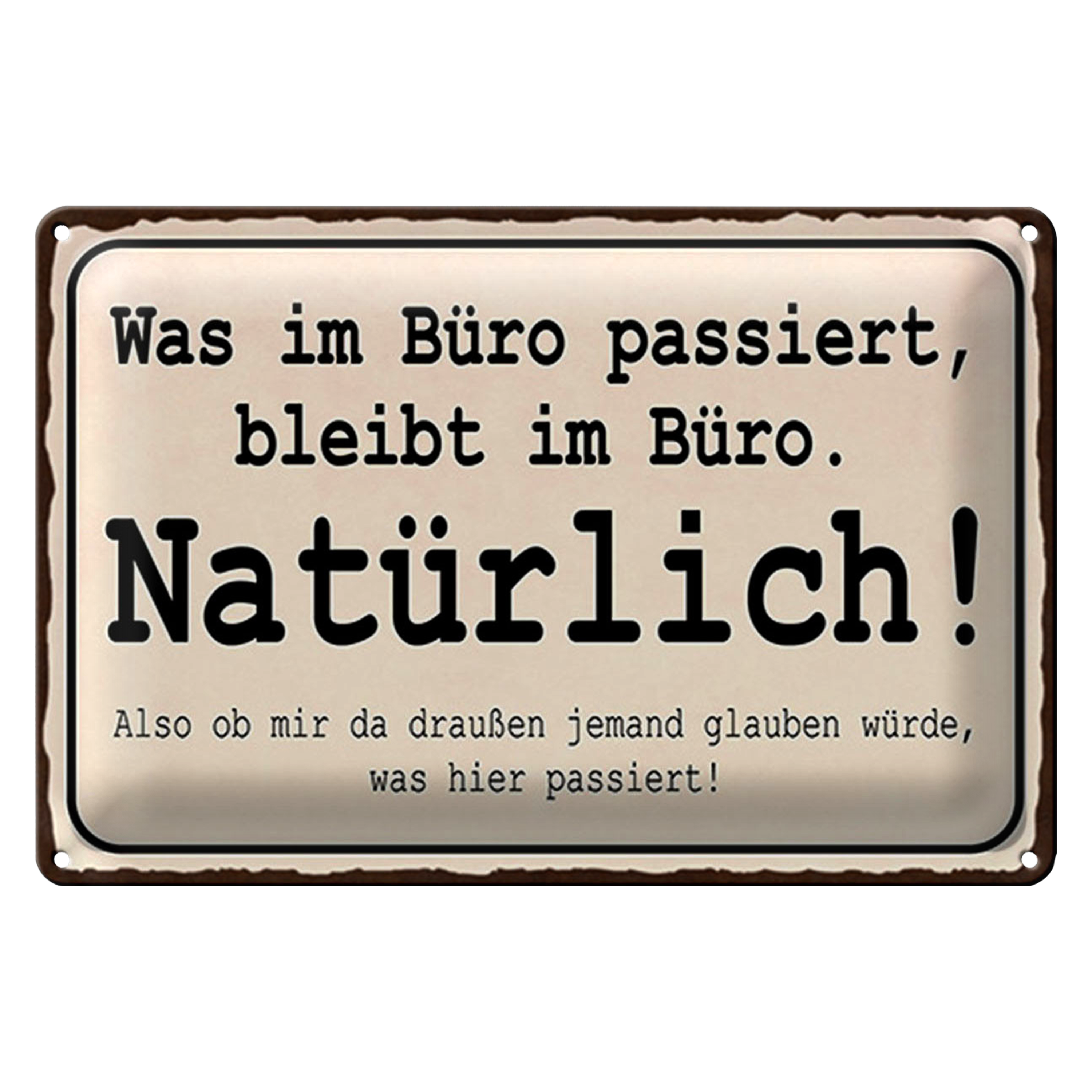 Blechschild Spruch 30x20cm was im Büro passiert bleibt im