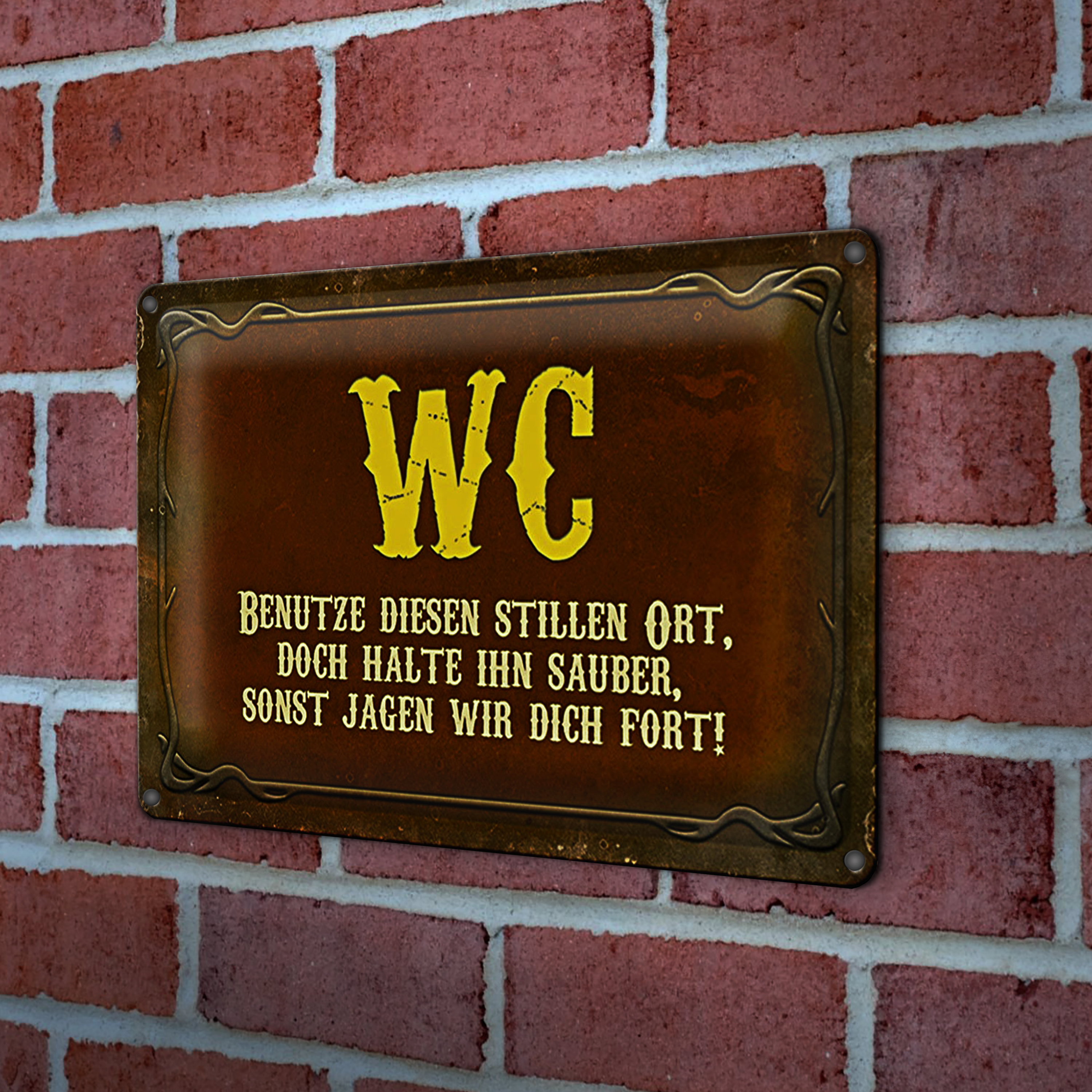 Blechschild Spruch 30x20cm WC benutze diesen stillen Ort rotes Schild