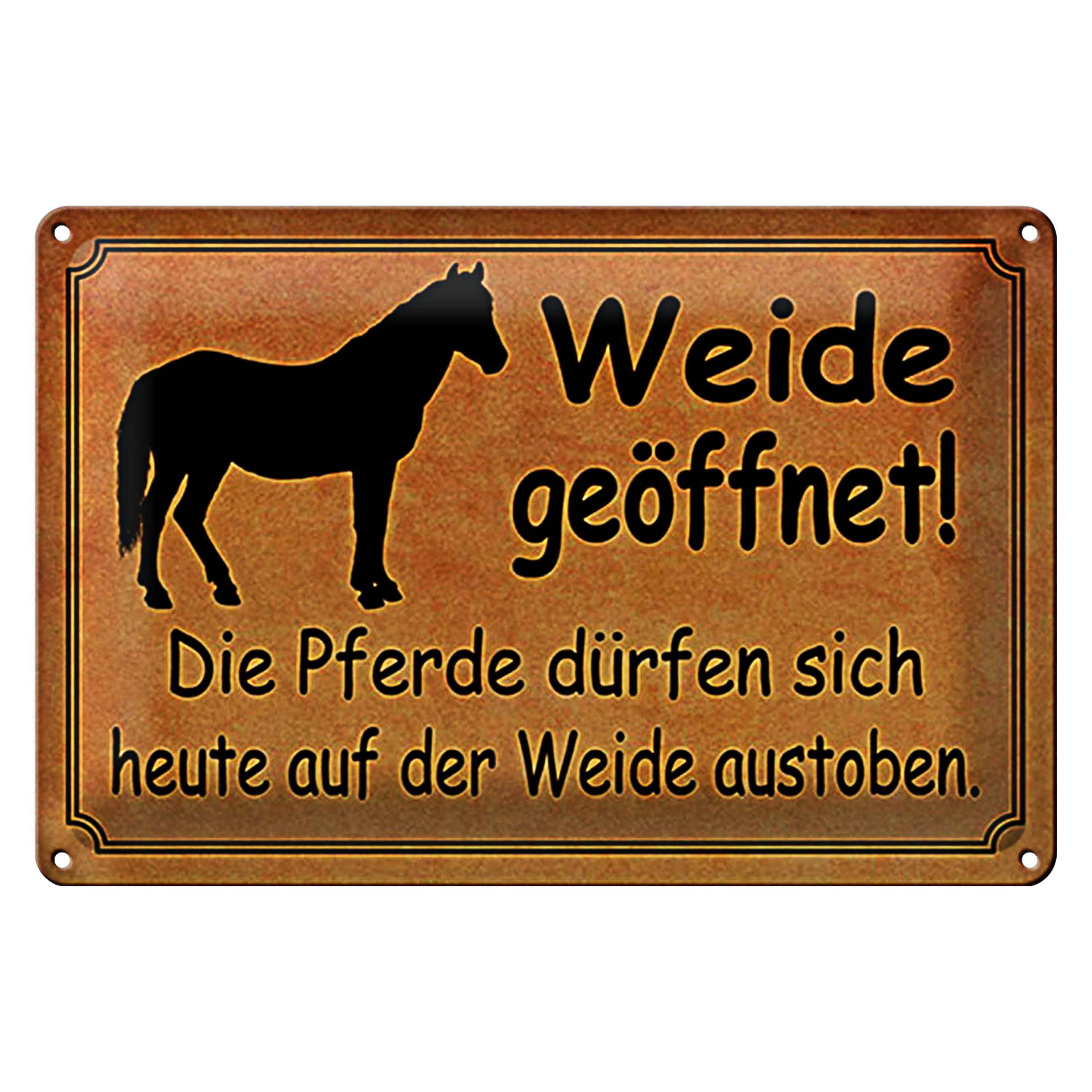 Blechschild Spruch 30x20cm Weide geöffnet Pferde dürfen