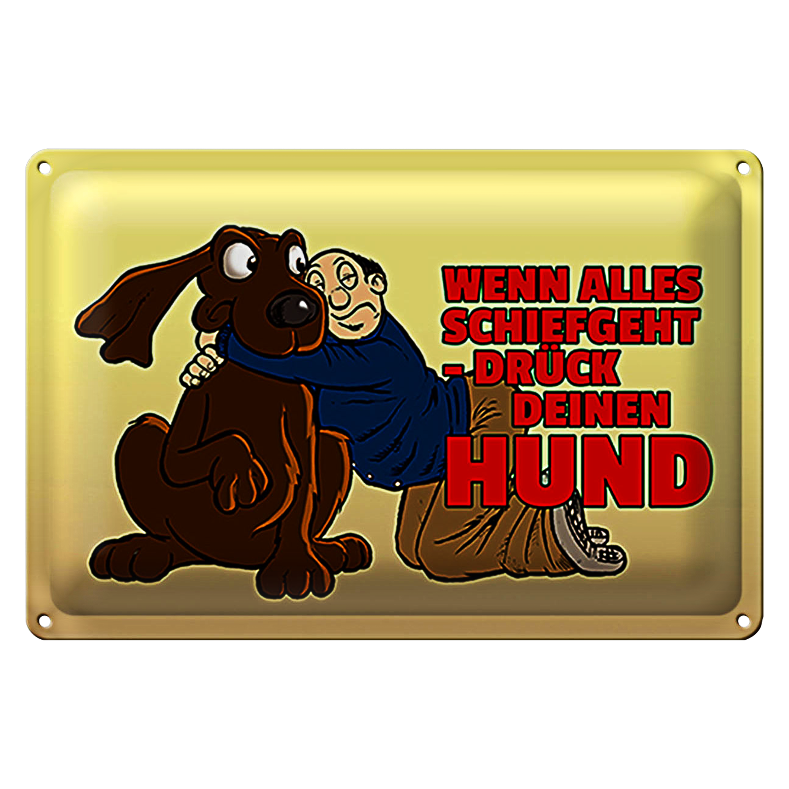 Blechschild Spruch 30x20cm Wenn alles schief geht drück Hund