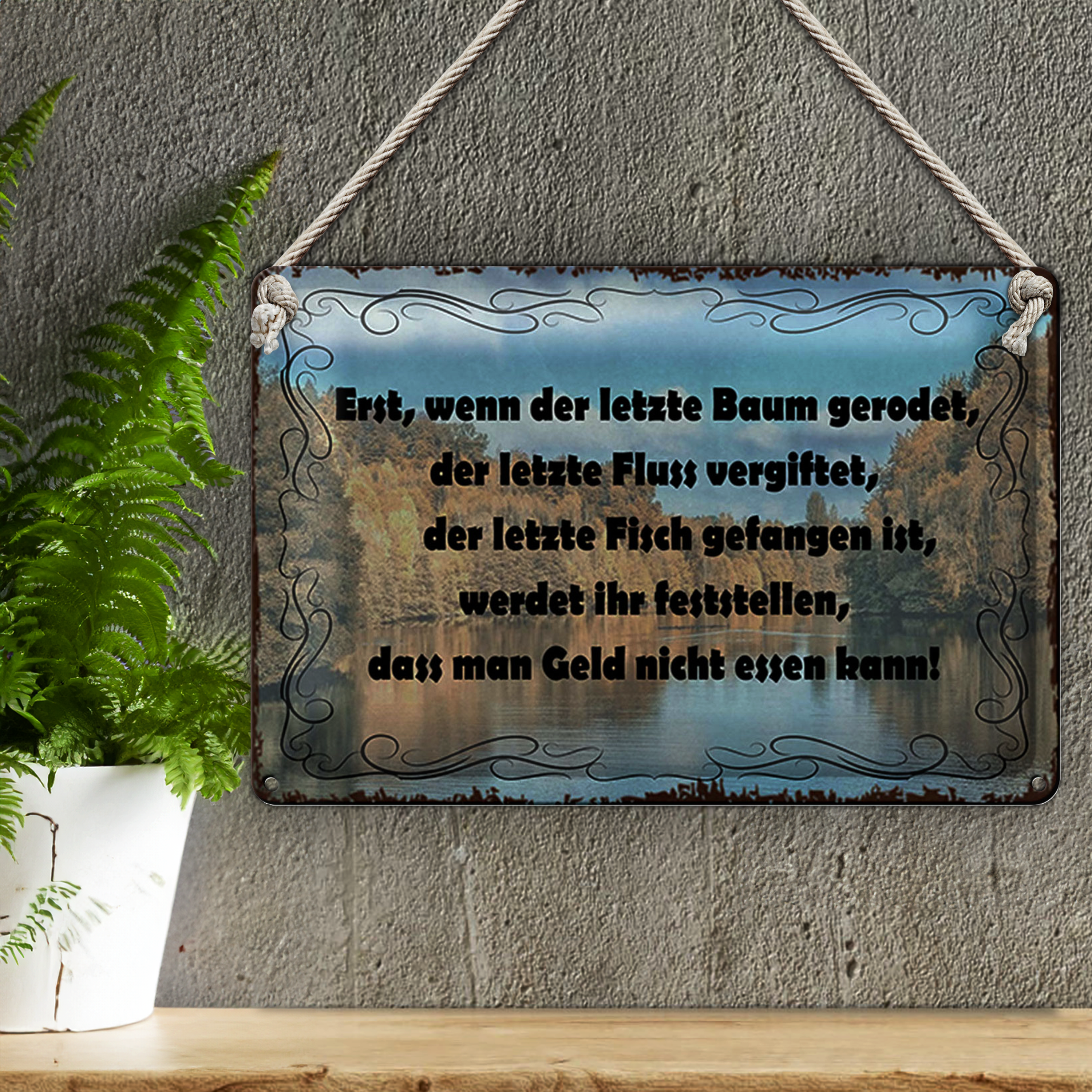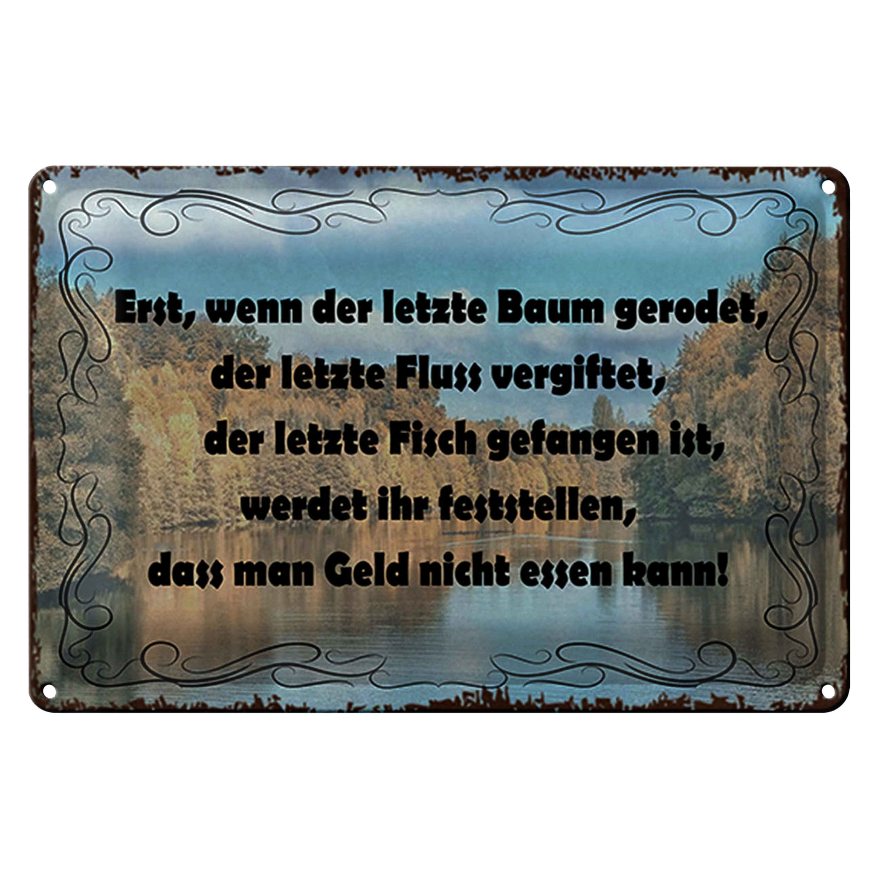 Blechschild Spruch 30x20cm wenn der letzte Baum gerodet