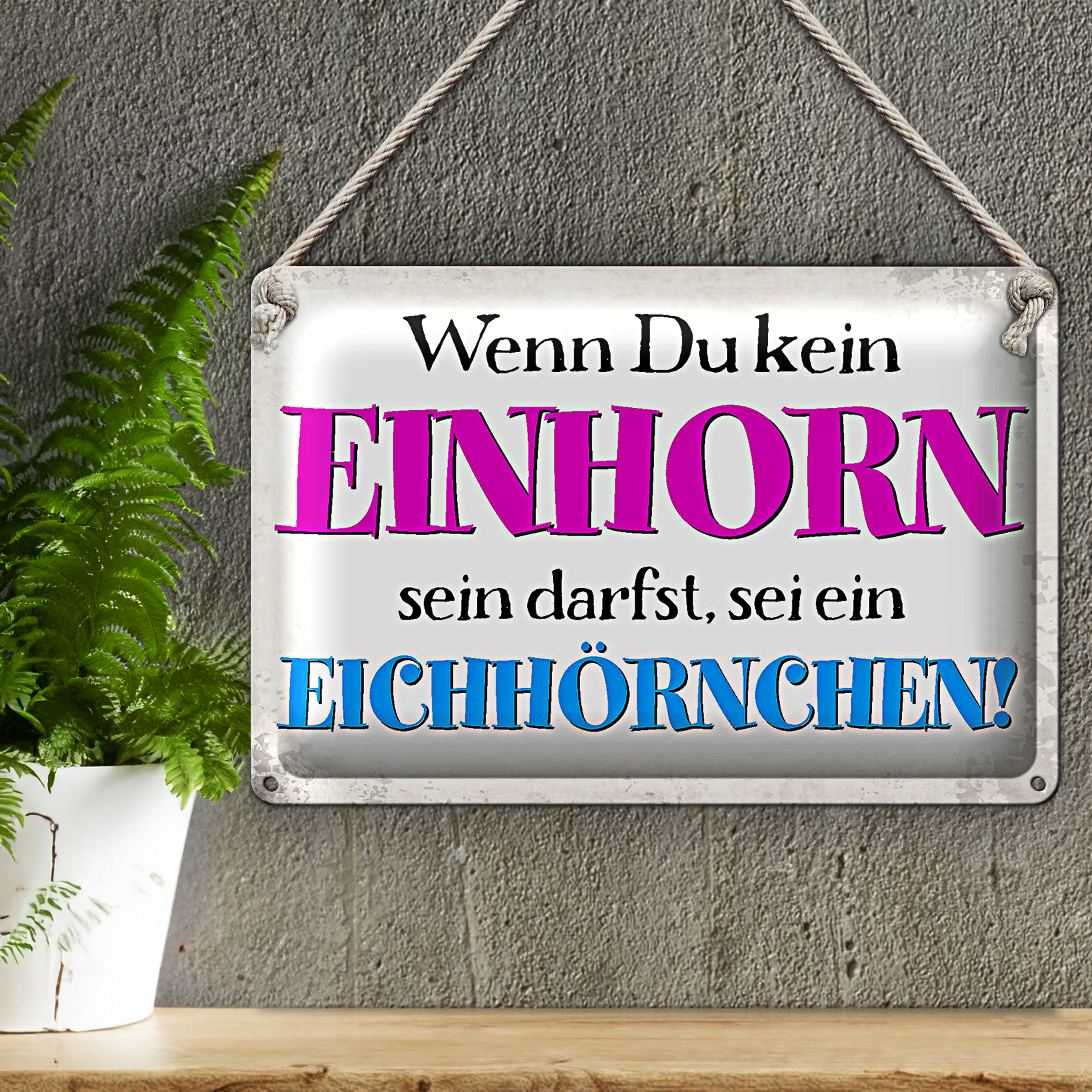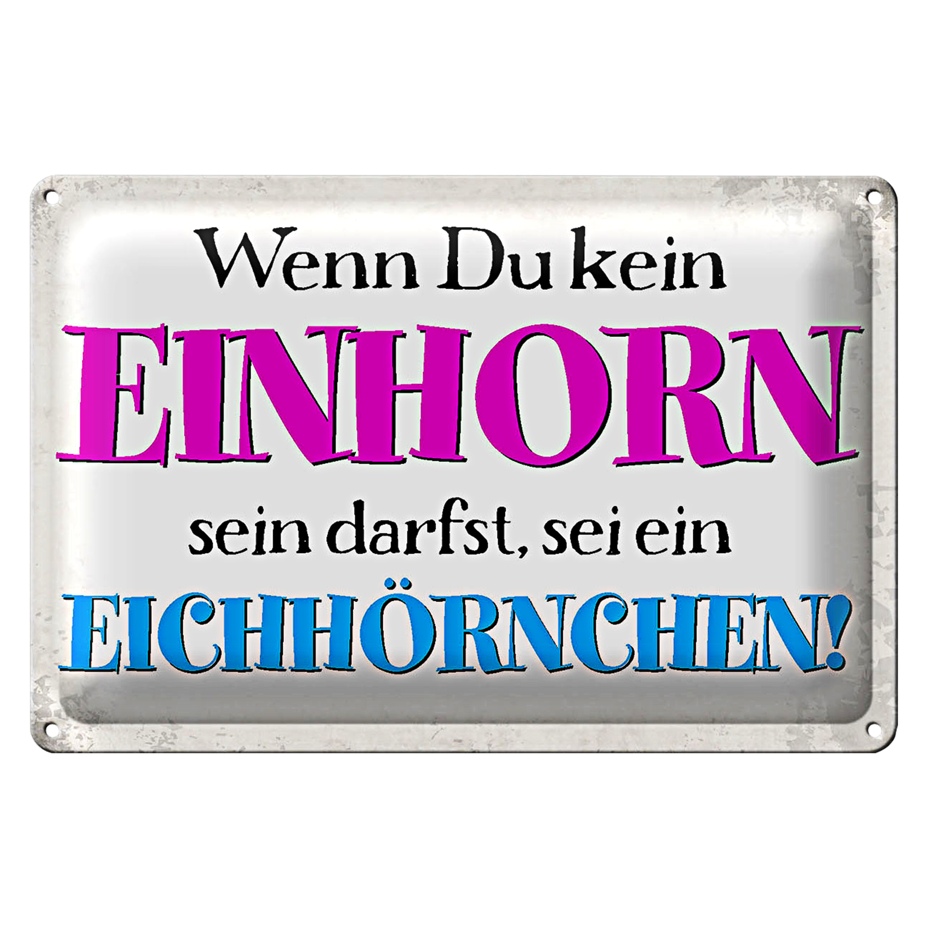 Blechschild Spruch 30x20cm wenn kein Einhorn Eichhörnchen