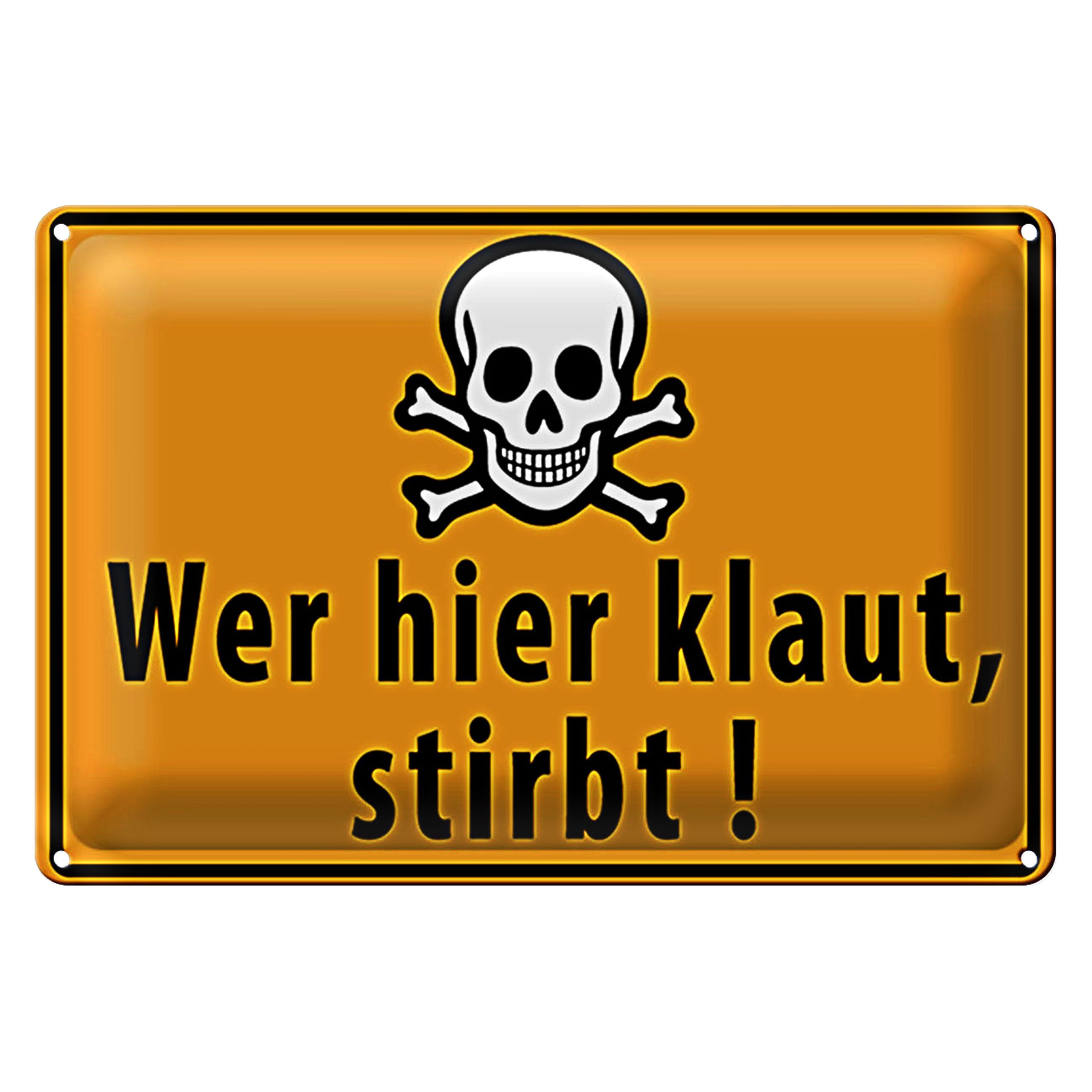 Blechschild Spruch 30x20cm wer hier klaut stirbt Totenkopf