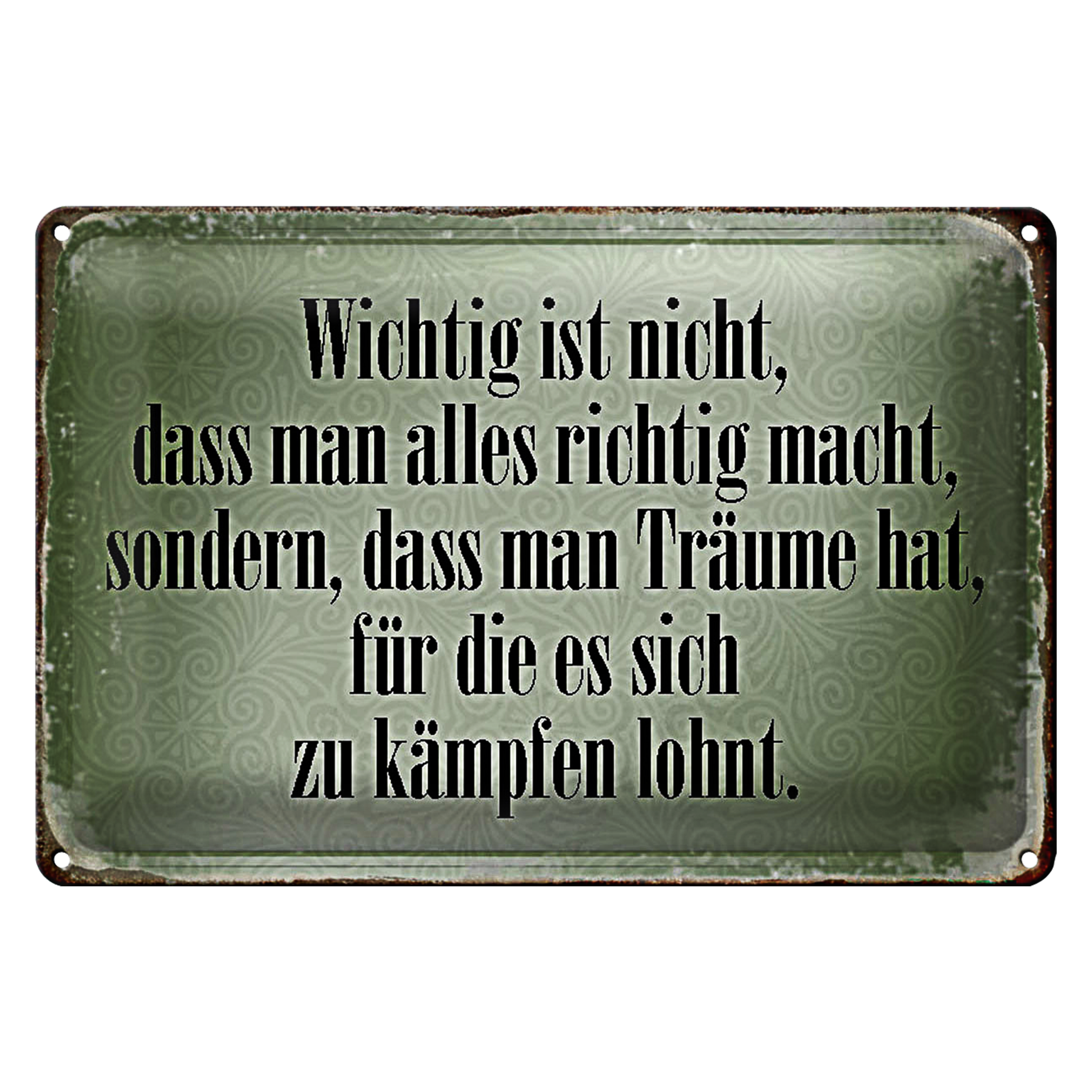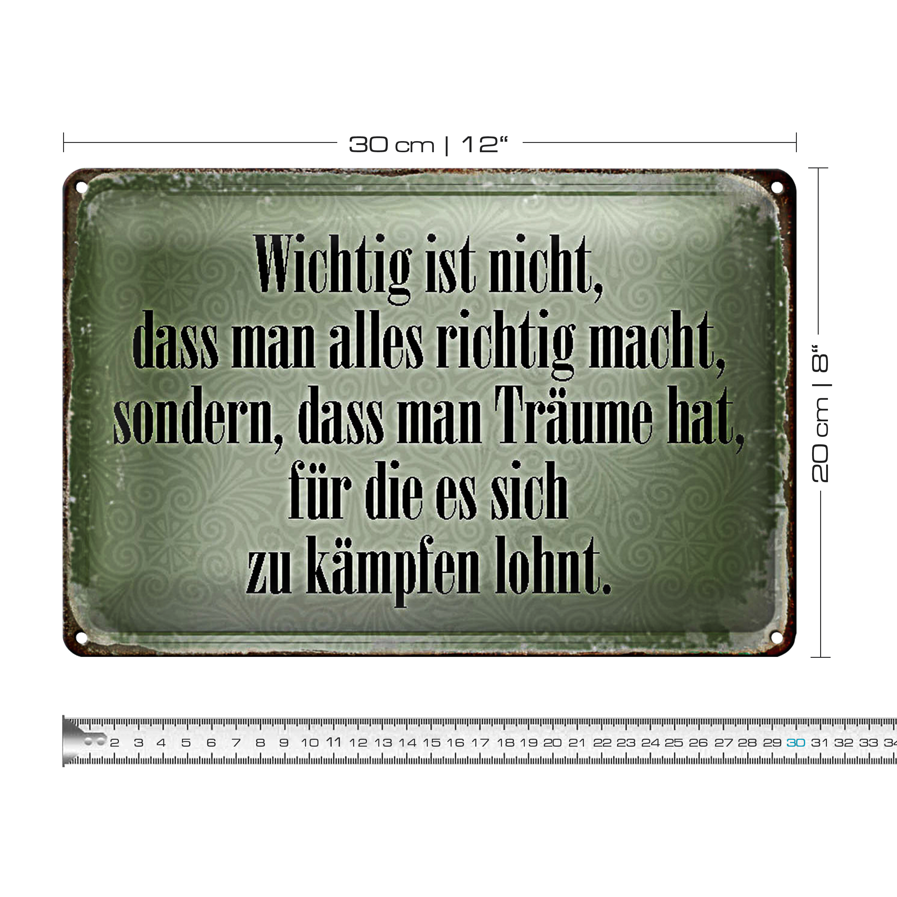 Blechschild Spruch 30x20cm wichtig Träume haben und kämpfen
