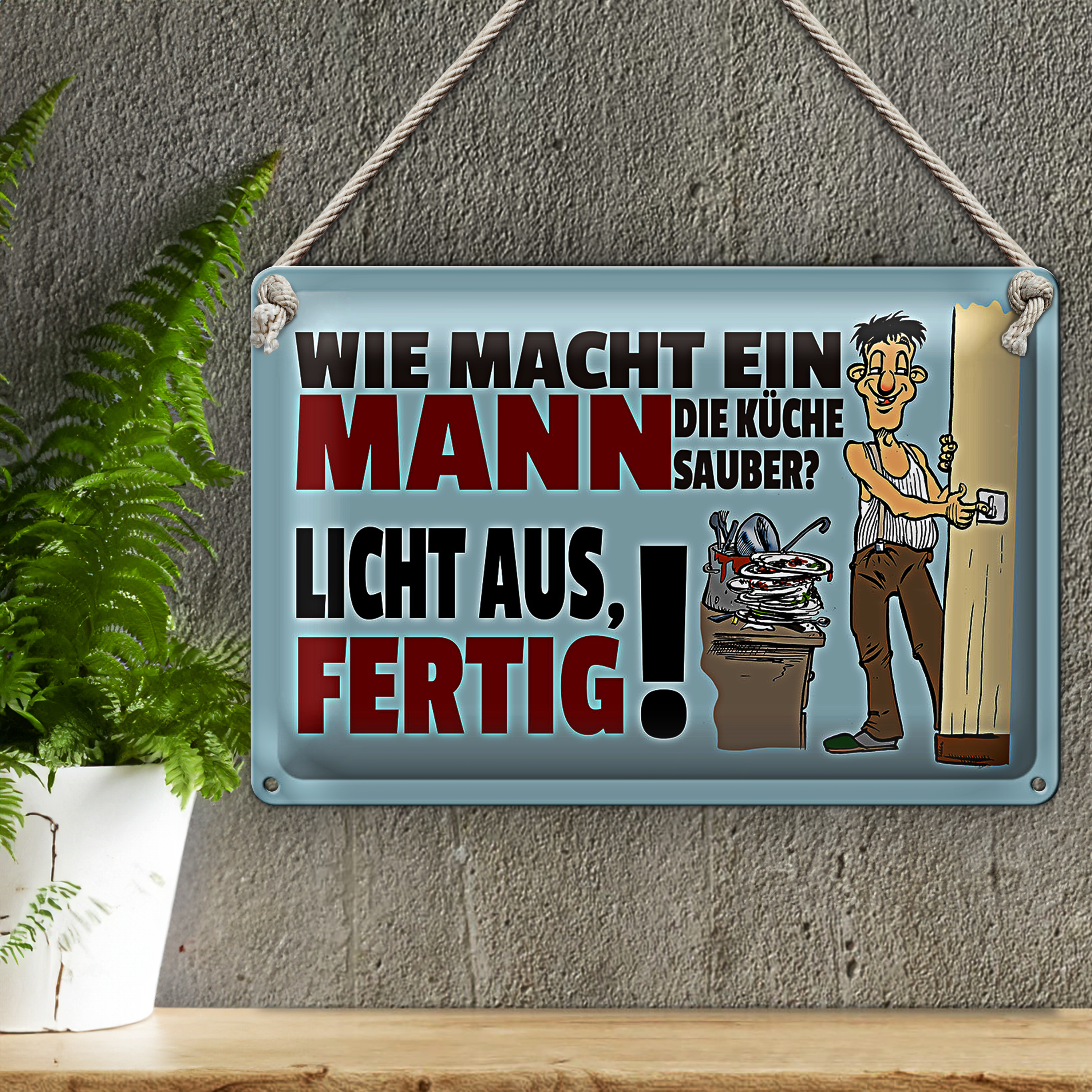 Blechschild Spruch 30x20cm wie macht ein Mann Küche sauber