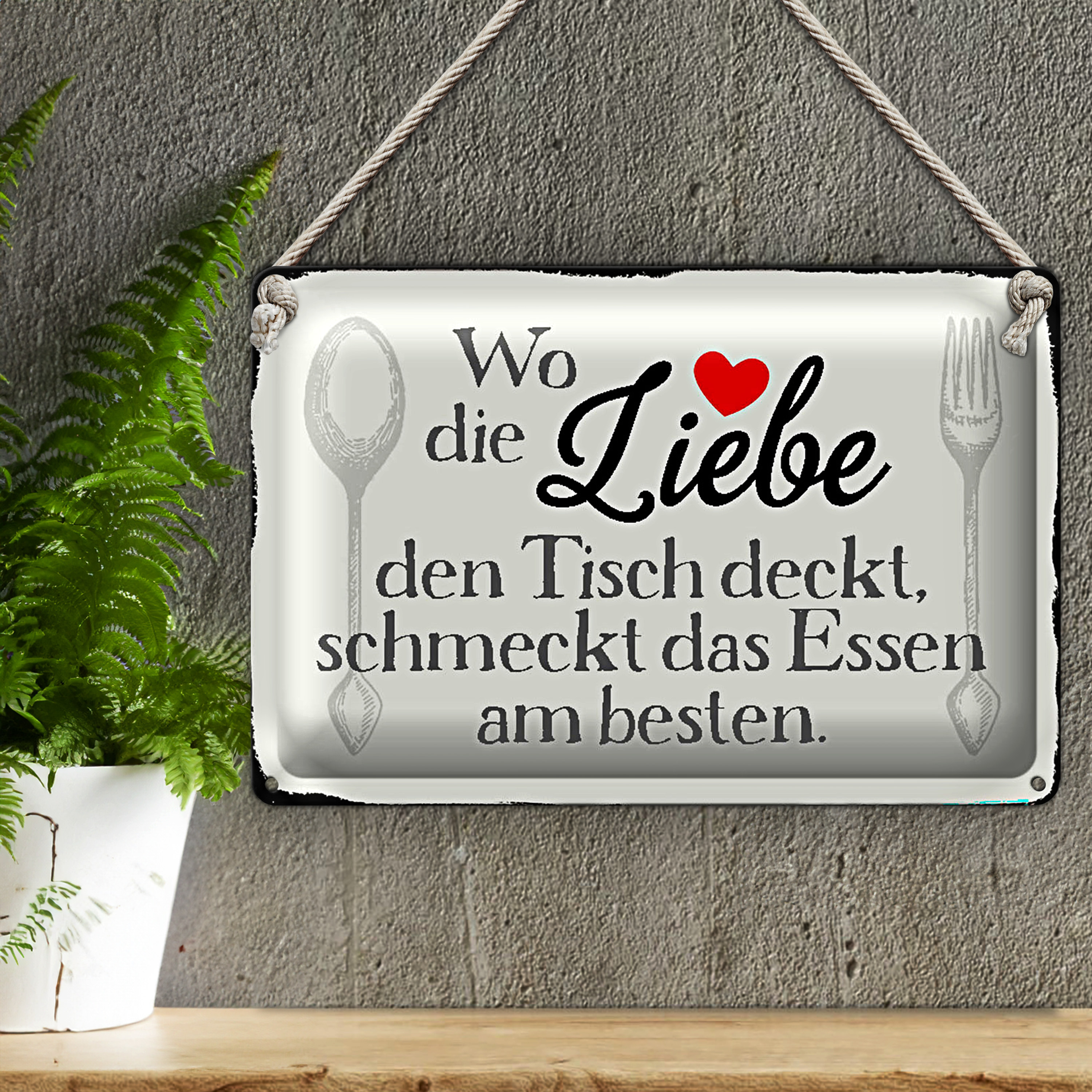 Blechschild Spruch 30x20cm wo Liebe den Tisch deckt Essen
