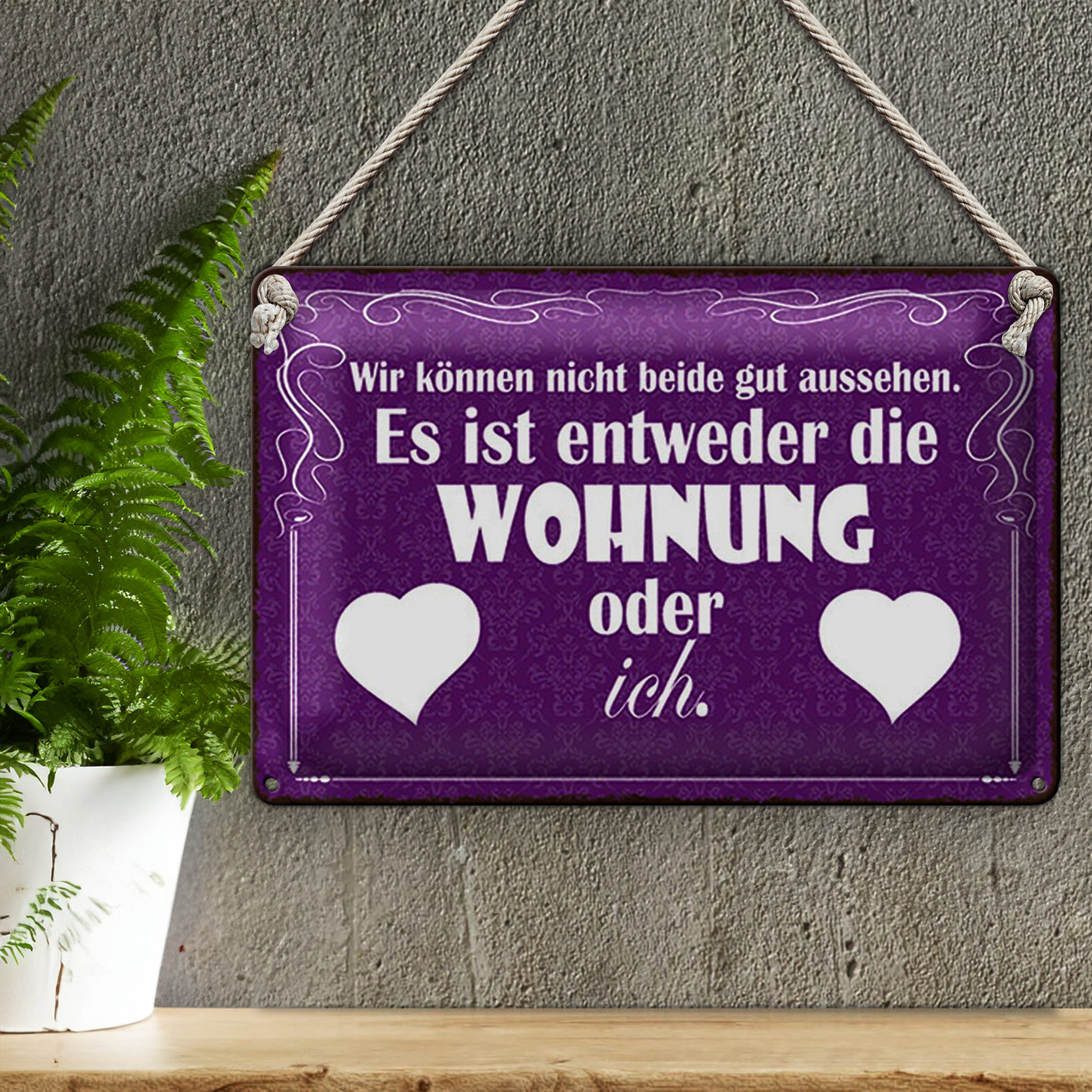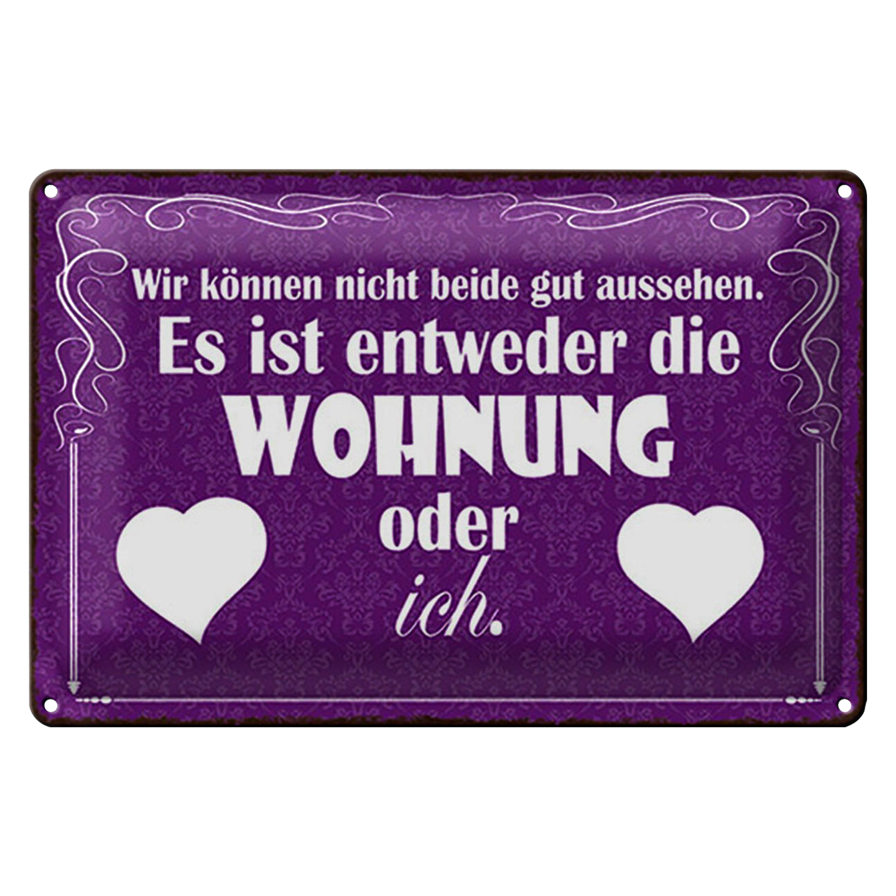 Blechschild Spruch 30x20cm Wohnung oder ich gut aussehen