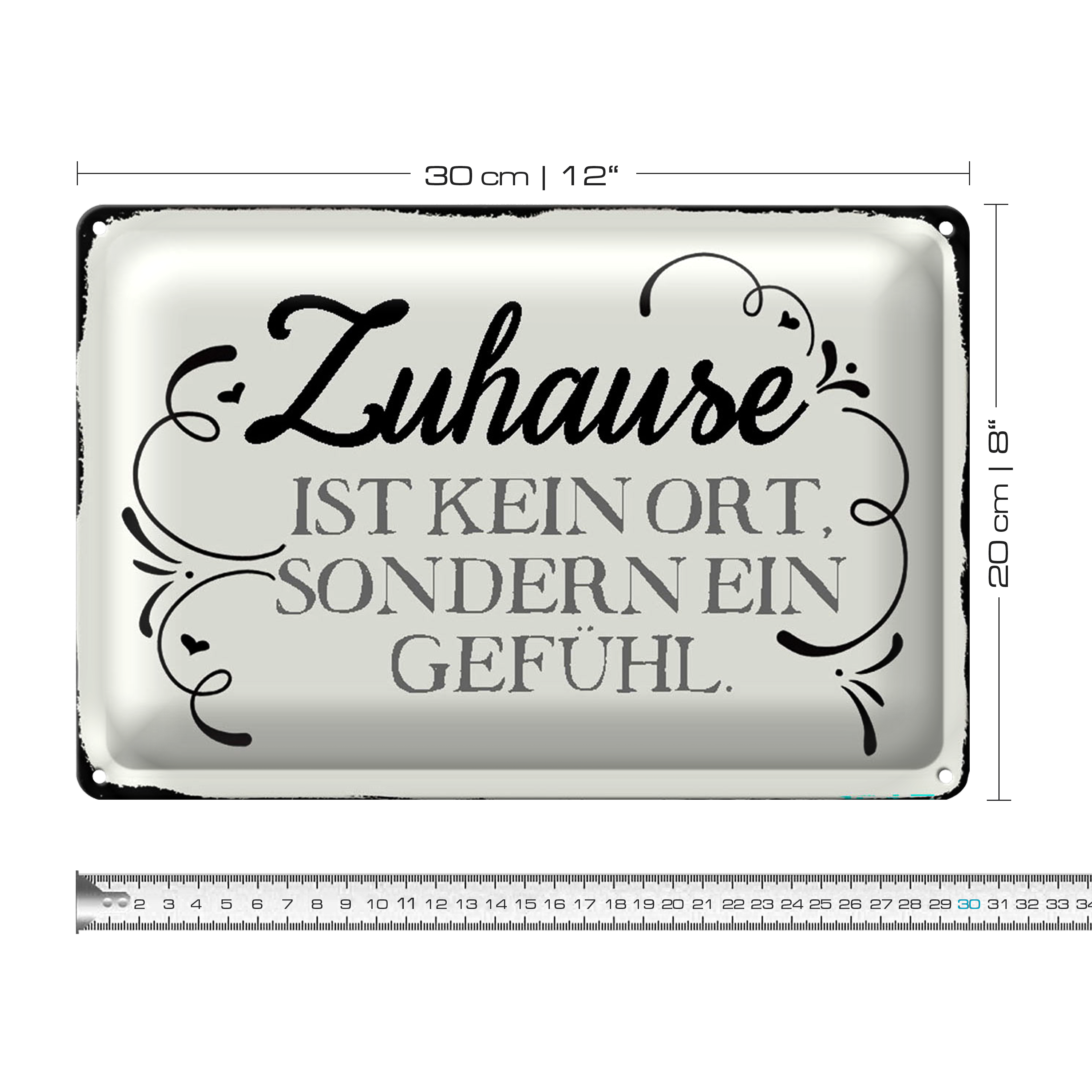 Blechschild Spruch 30x20cm Zuhause ist kein Ort sondern ein
