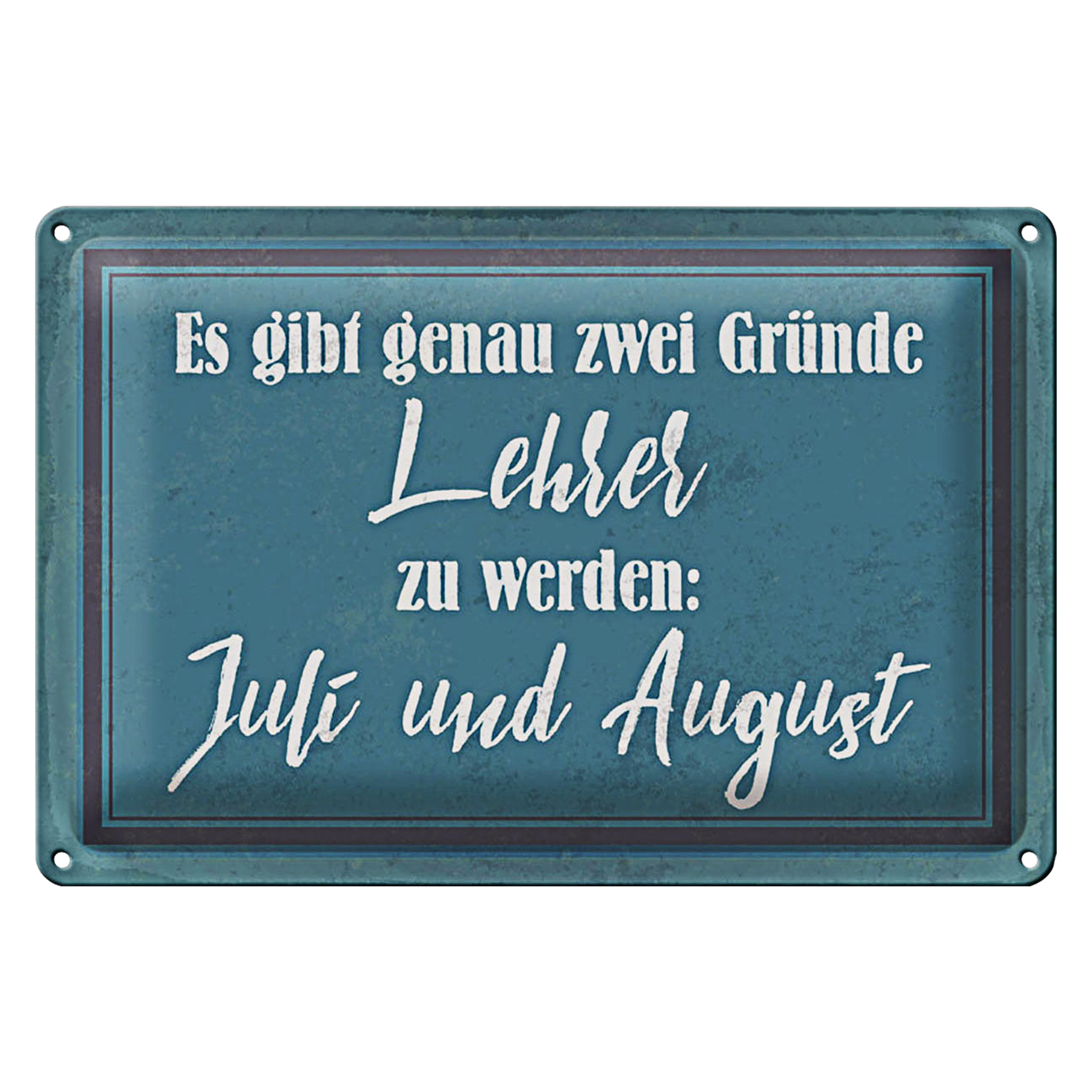 Blechschild Spruch 30x20cm zwei Gründe Lehrer zu werden