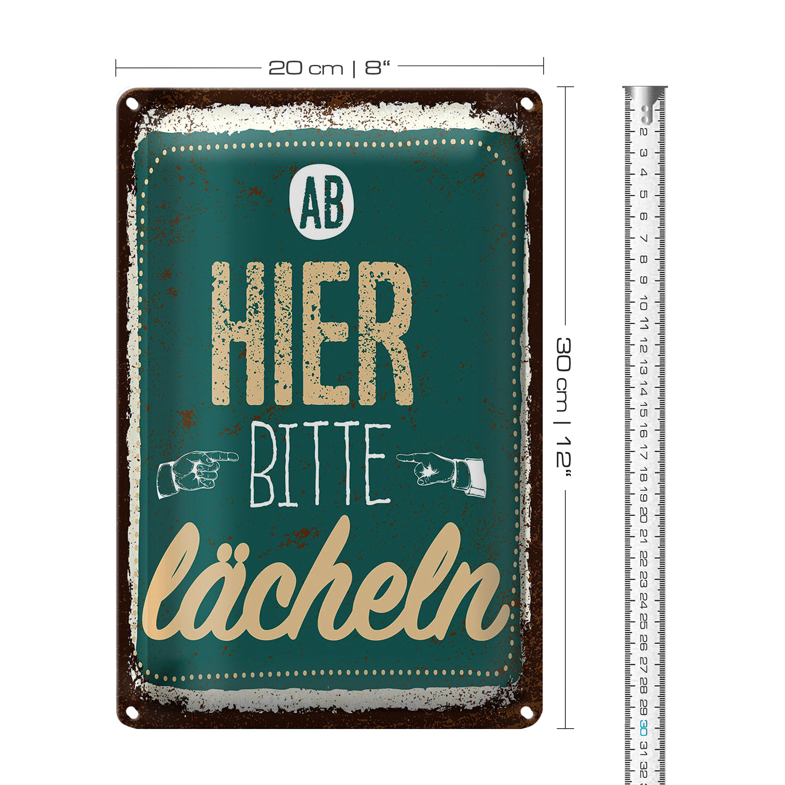 Blechschild Spruch Ab hier bitte lächeln Lachen Glück 20x30cm