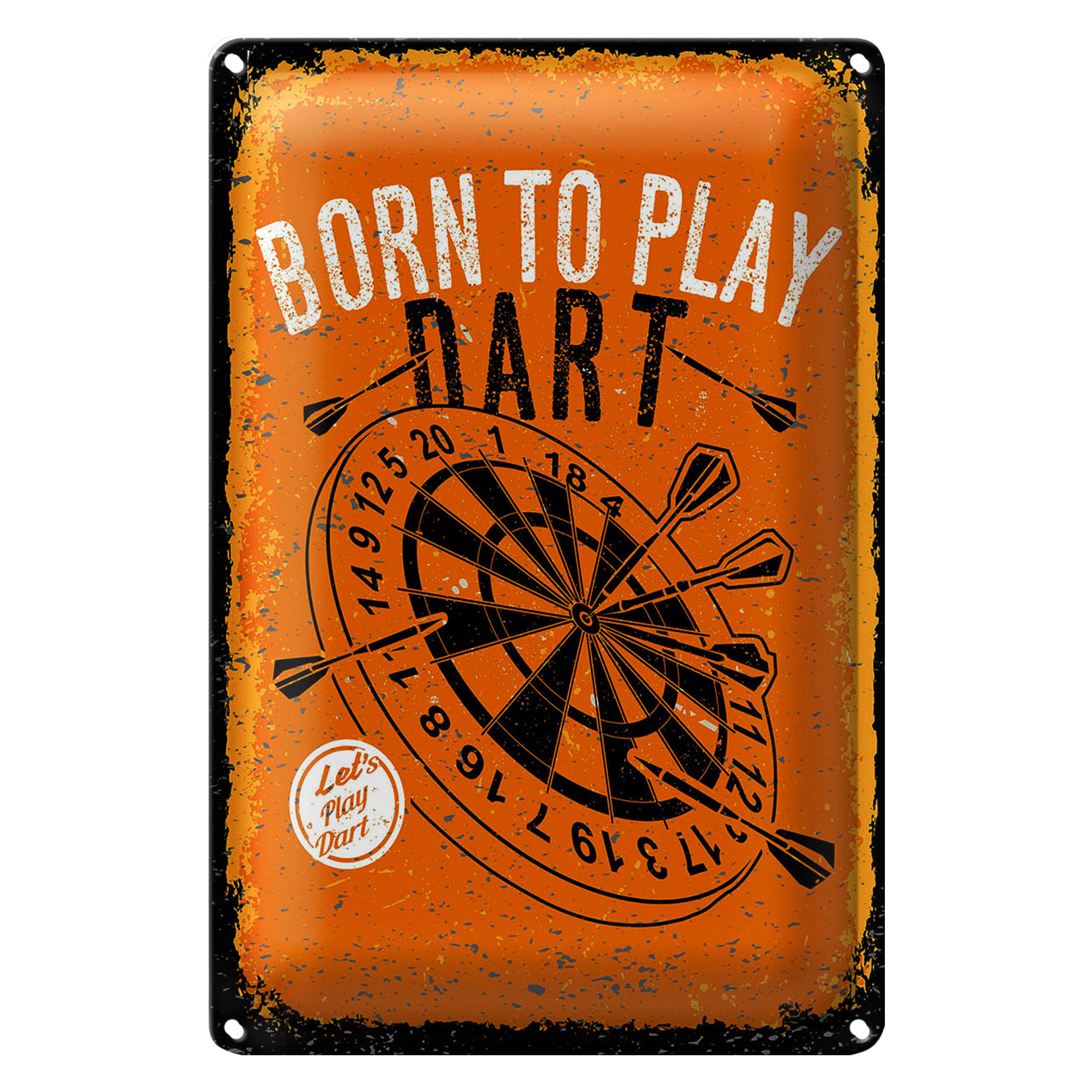 Blechschild Spruch Born to play Dart Let`s play 20x30cm