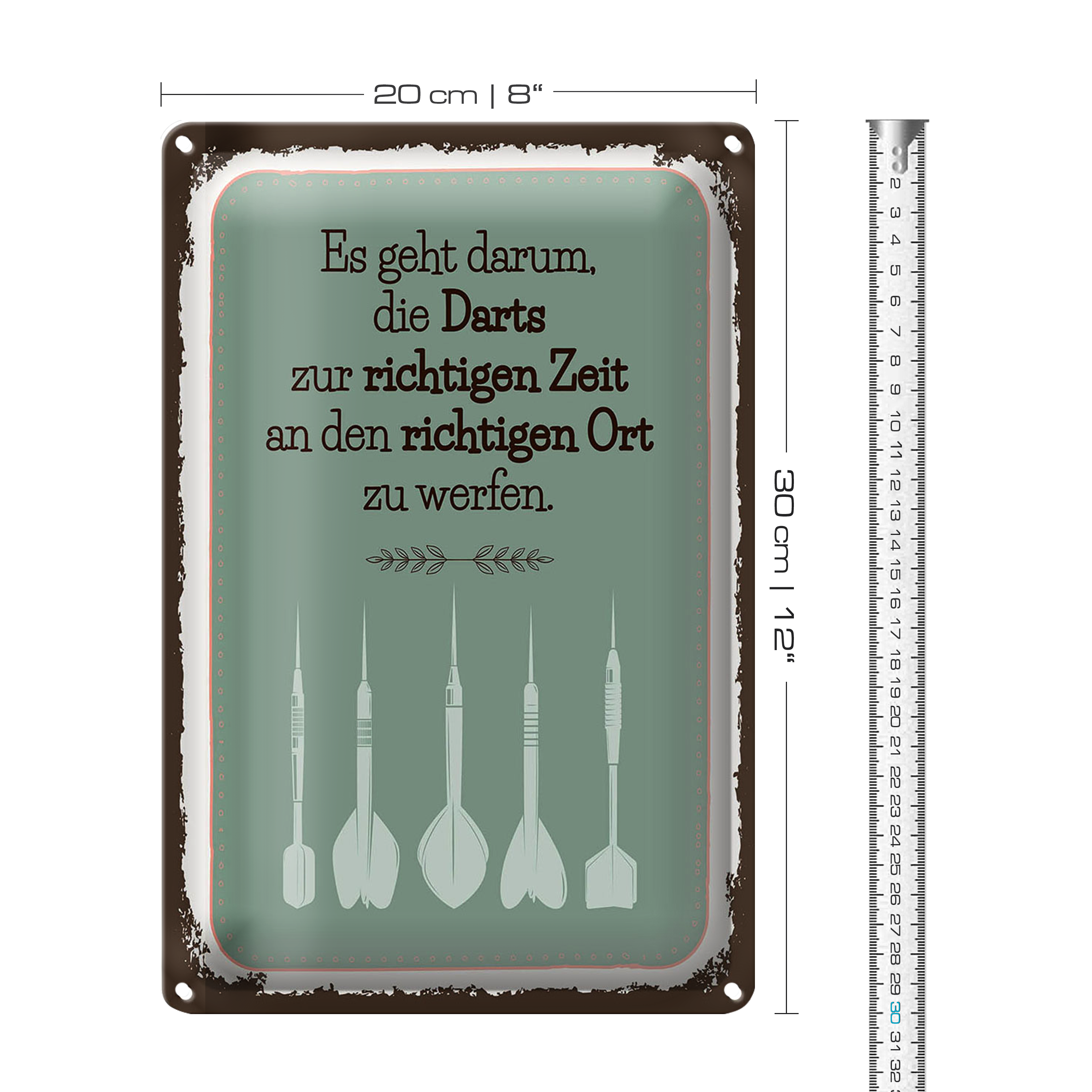 Blechschild Spruch Darts zur richtigen Zeit werfen 20x30cm