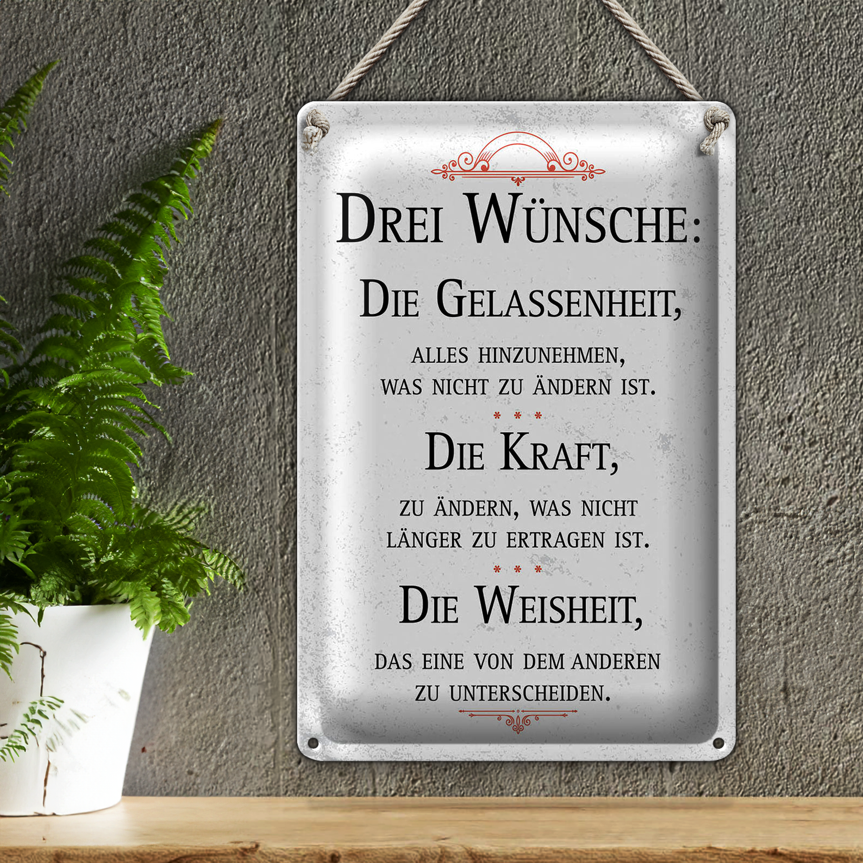 Blechschild Spruch Drei Wünsche Gelassenheit Weisheit 20x30cm