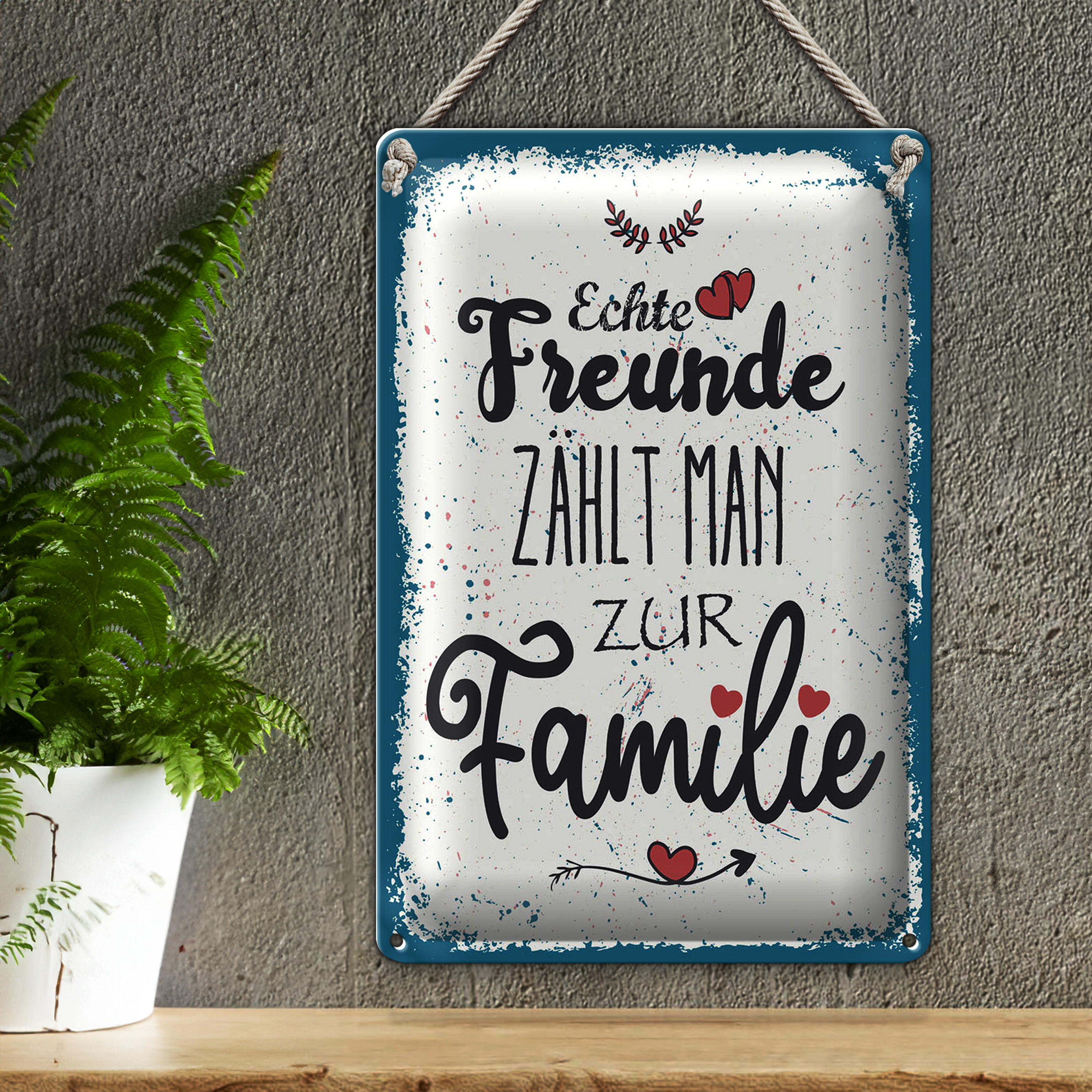 Blechschild Spruch Echte Freunde zählt man zur Familie 20x30cm