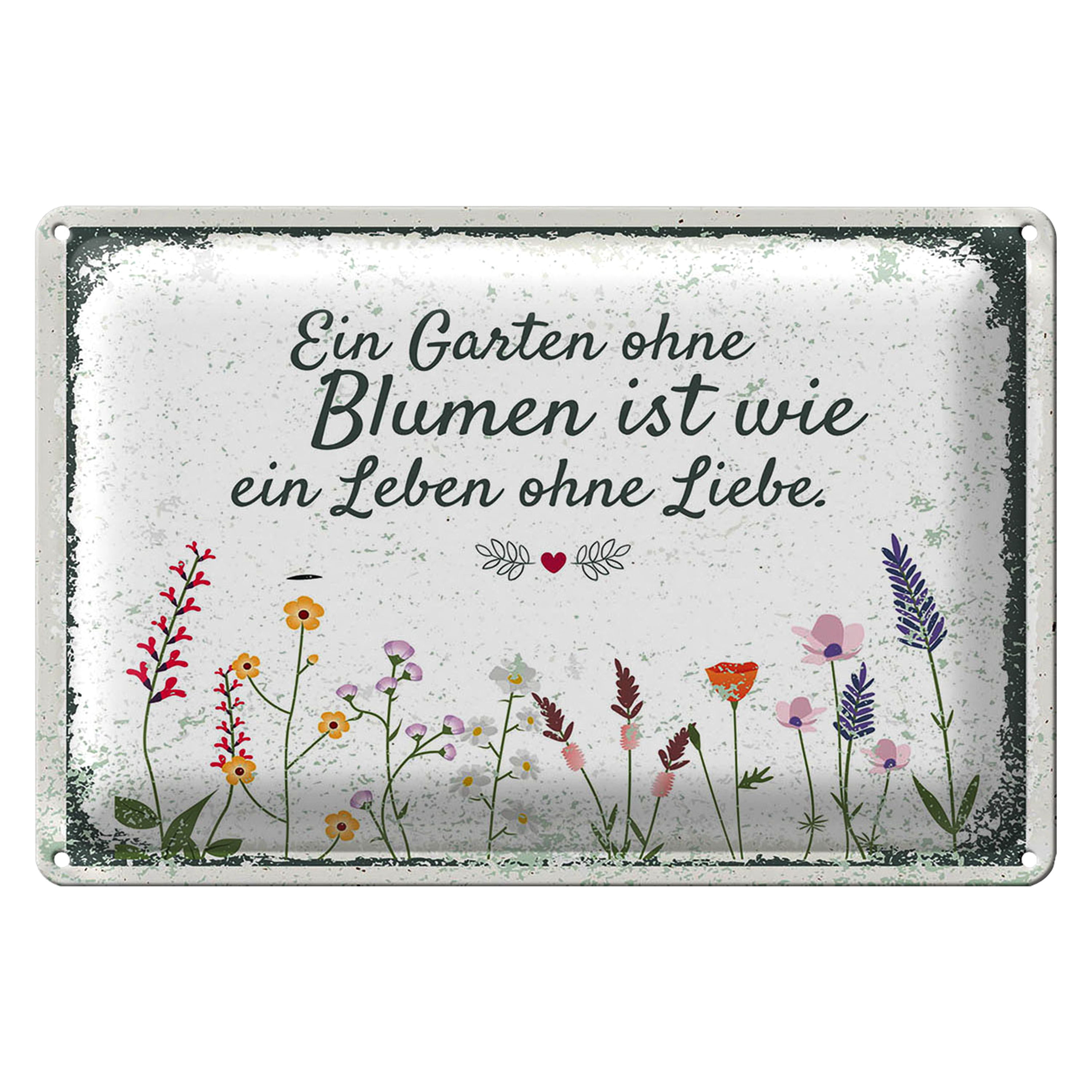 Blechschild Spruch Garten ohne Blumen Leben ohne Liebe 30x20cm